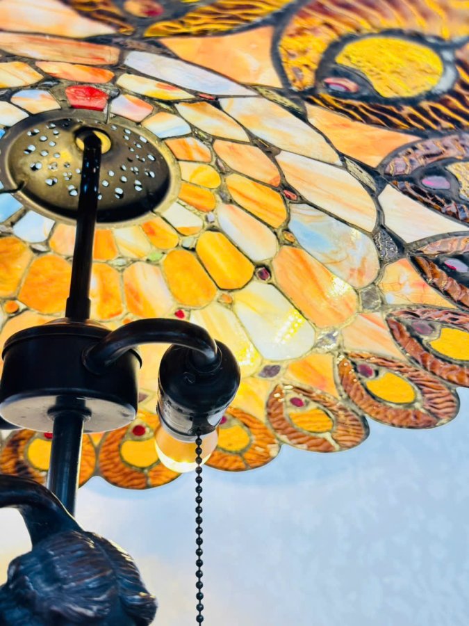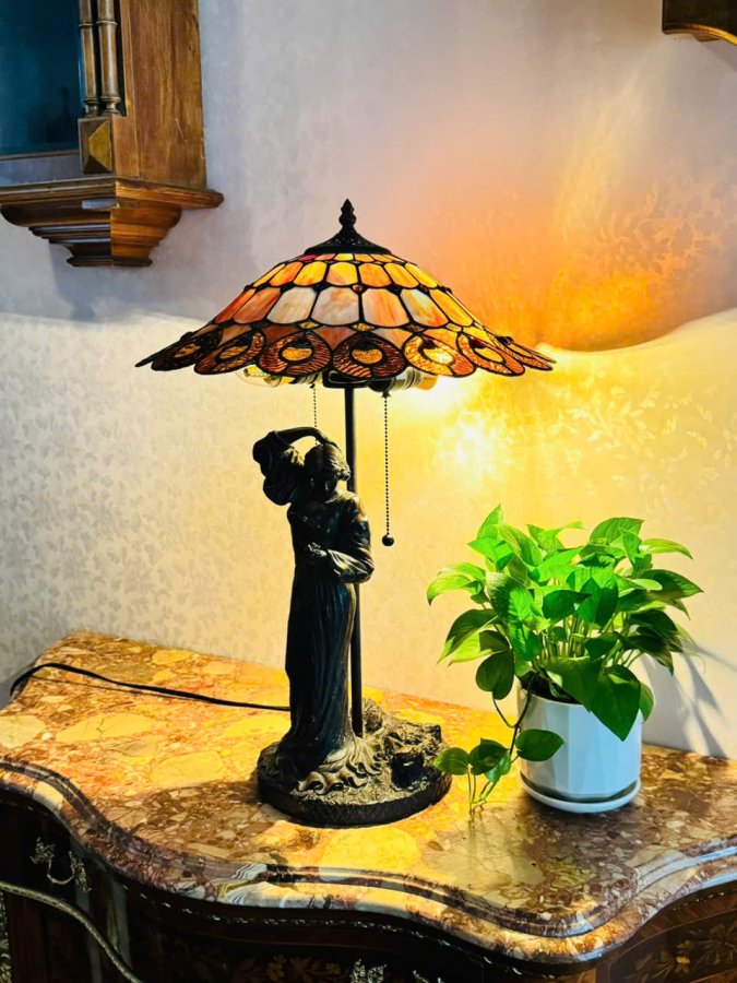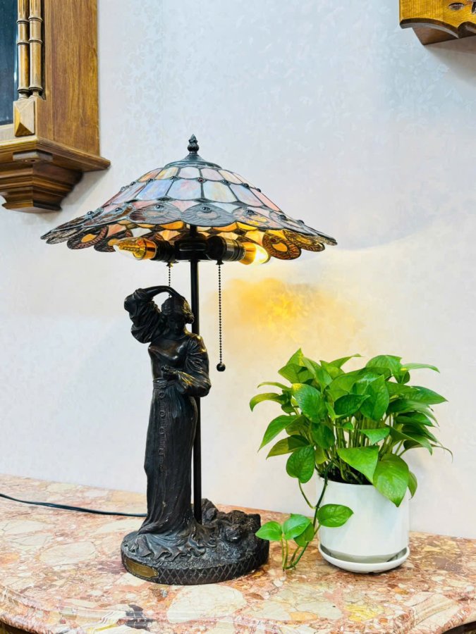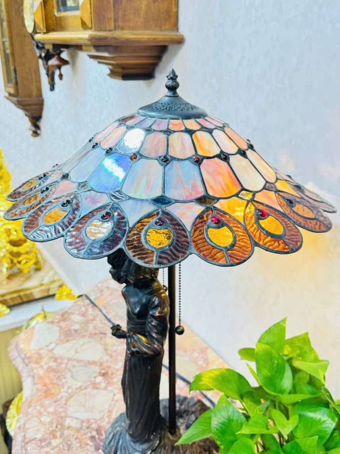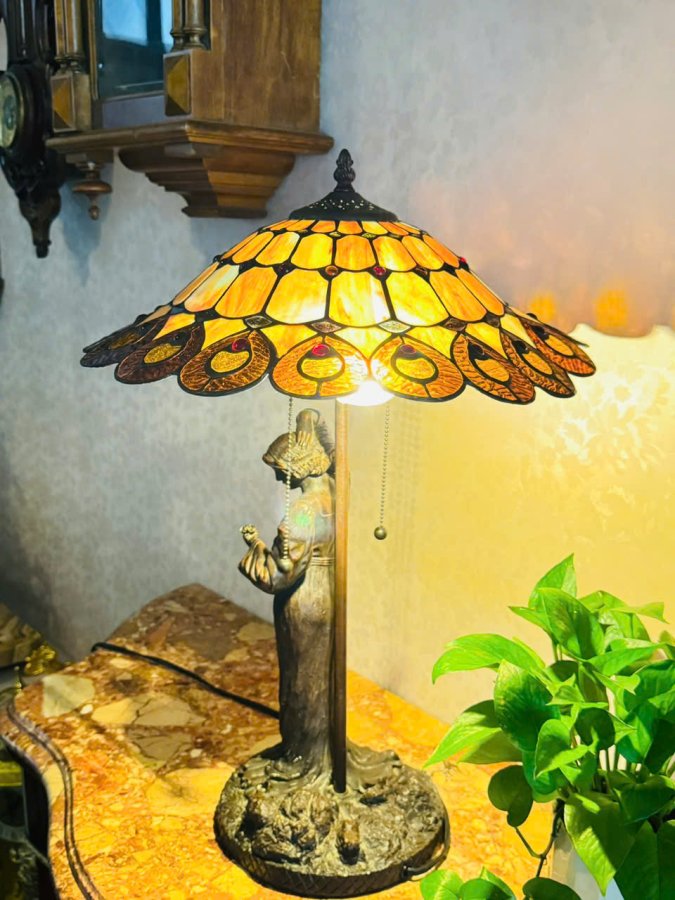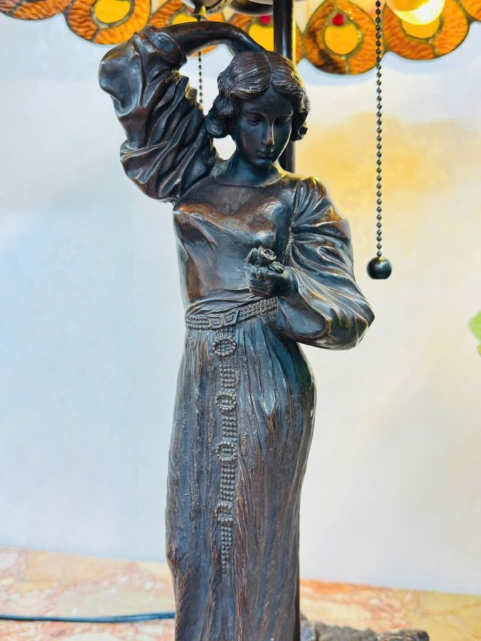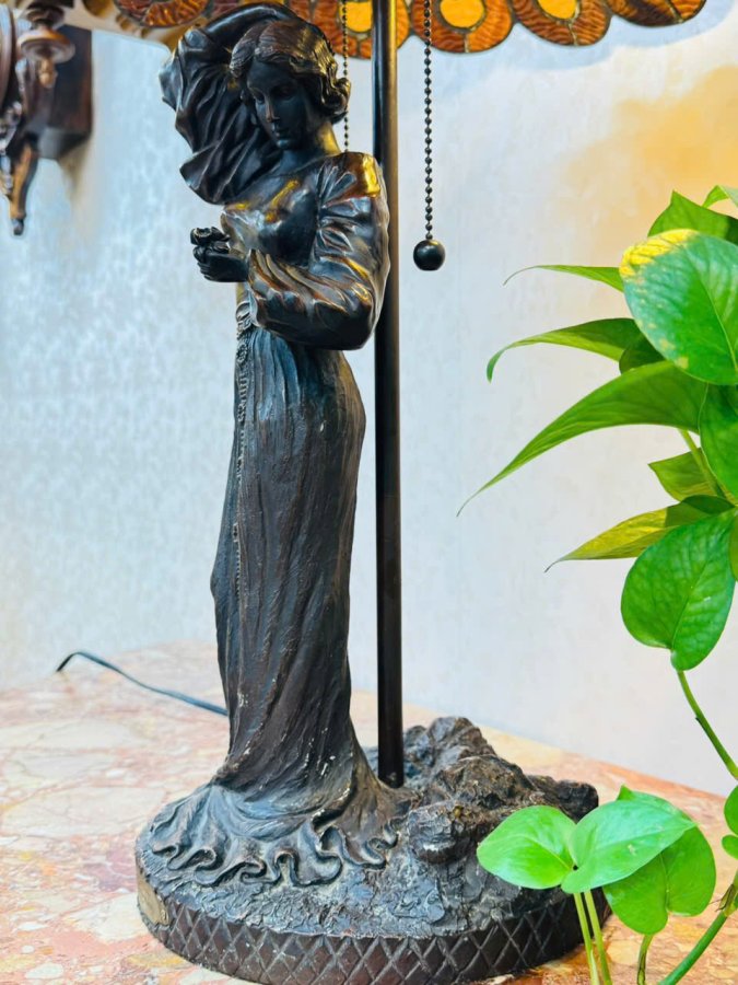 Đèn tiffany tượng để bàn "Griselda" Maydlar , lấy cảm ứng từ tác phẩm của Maxfield Parrish