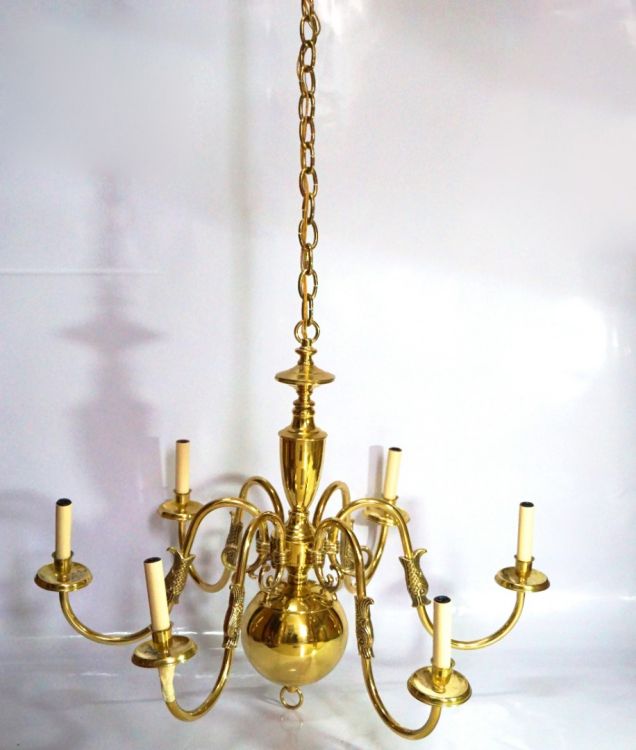 Đèn thả trần bằng đồng con cá được nhập từ Mỹ vềKích thước : cao 55cm ( chưa tính dây treo ), rộng 73cm.Đèn gồm có 7 đóa