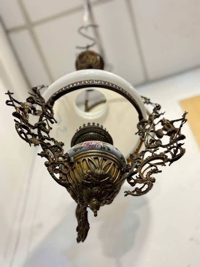 Chất liệu: đồng, sứ, men rạng vẽ hoa