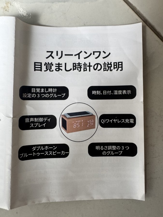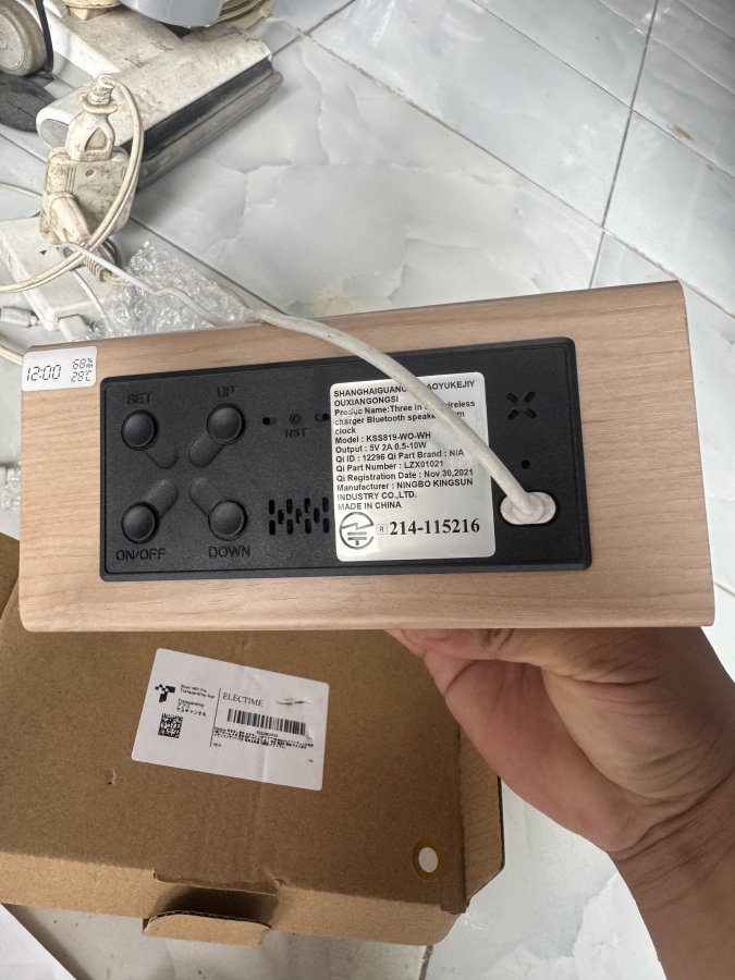 Kt 7x10x15cm nhựa giả gỗ Các chức năng như:đh,báo thức,báo nhiệt độ,độ ẩm,ngày tháng năm,sạc ko dây,loa Blu Tất cả đều hoạt động ok riêng sạc ko dây chưa test sạc full pin Mới chưa xài ngen Giá 480k dùng nguồn 5v trực tiếp