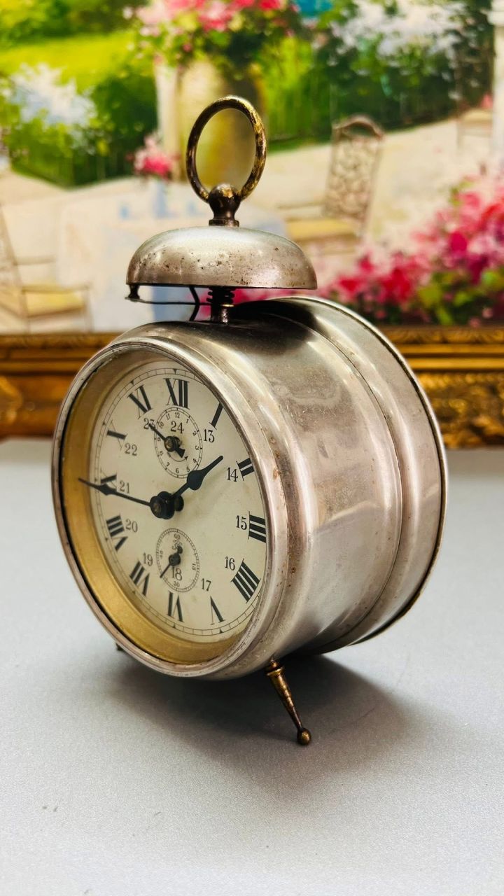 Đồng hồ báo thức Pháp cổ sản xuất năm 1910 – dòng máy 4 kim vận hành chuẩn xác, tiếng chuông vang rõ ràng, hình thức còn rất đẹp.