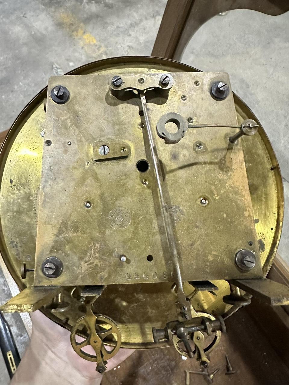 cơ chế hoạt động , dựa trên nguyên lý thăng bằng và trọng lượng, máy tuần gong vòng chuông 1/2 giờ. âm hay size 130 x 37 cm- mão đại bàng uy dũng, mặt men sáng tài-có kim rốn giá trị-số serial 444 060 sx năm 1880, 2 tai cước tay lắc dài, đông đưa cho ta có cảm giác thư thả, giảm căn thẳng ,,,,