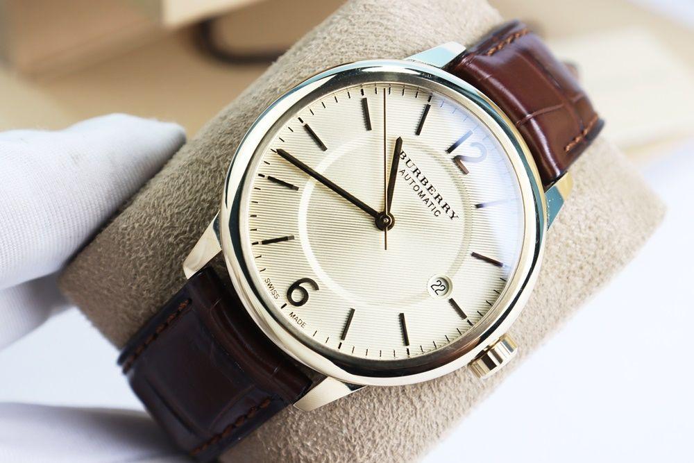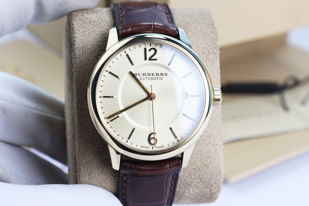 Đồng Hồ Nam : Burberry The Classic Round Automatic, dây da mạ Vàng Pvd, size 40mm - Fullbox.