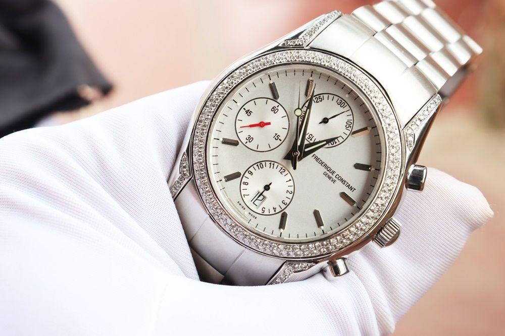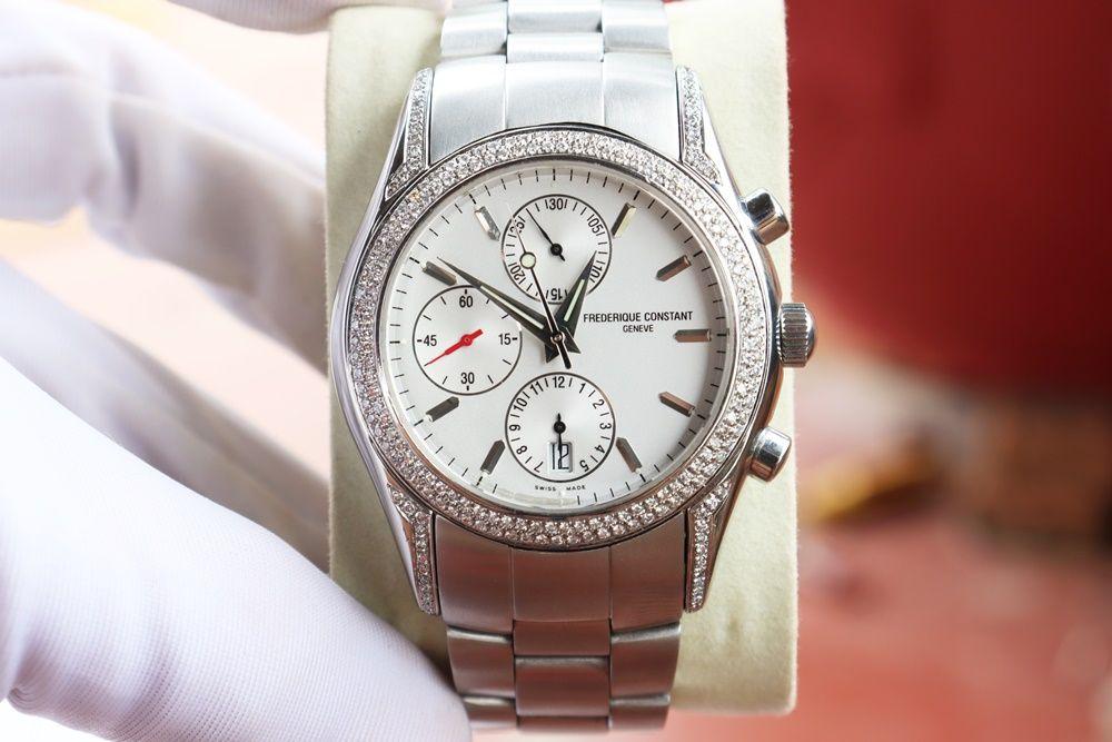 ĐH Nam : Frederique Constant Chronograph Automatic - Niềng đính full Kim Cương - Size 42mm..