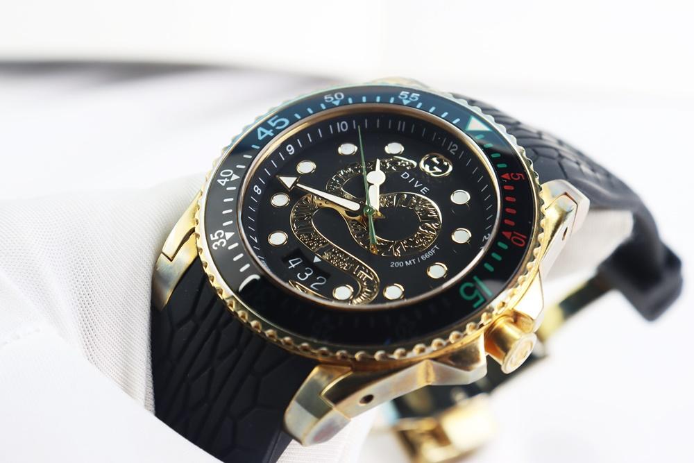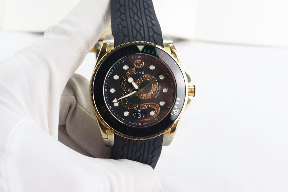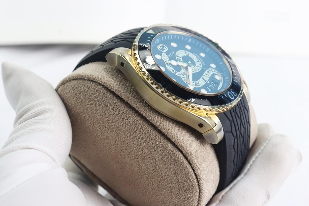 Đồng Hồ Nam : Gucci Dive Black Snake 3 kim mặt rắn, dây cao su lake vàng Size 45mm ...