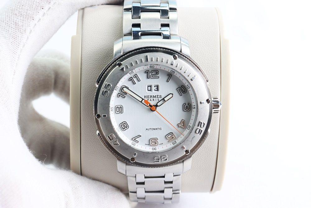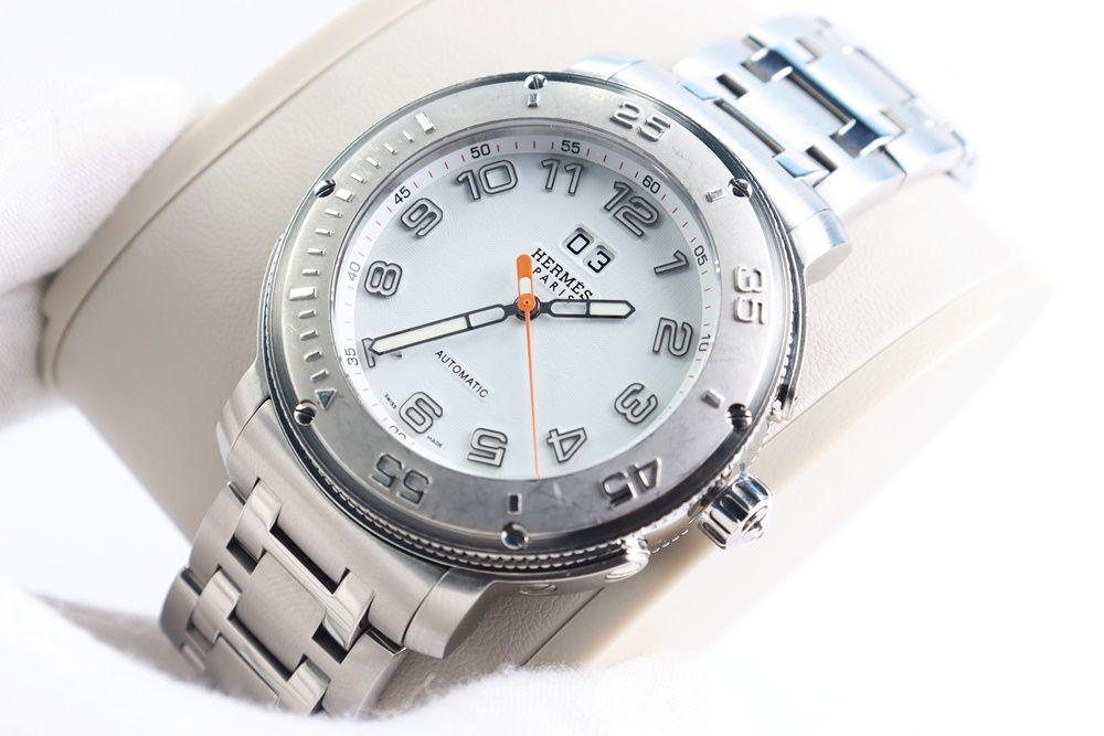 Đồng Hồ Nam : HERMES Clipper Sport Automatic - Thiết kế lộ máy, Niềng xoay, Mặt trắng cọc số học trò...