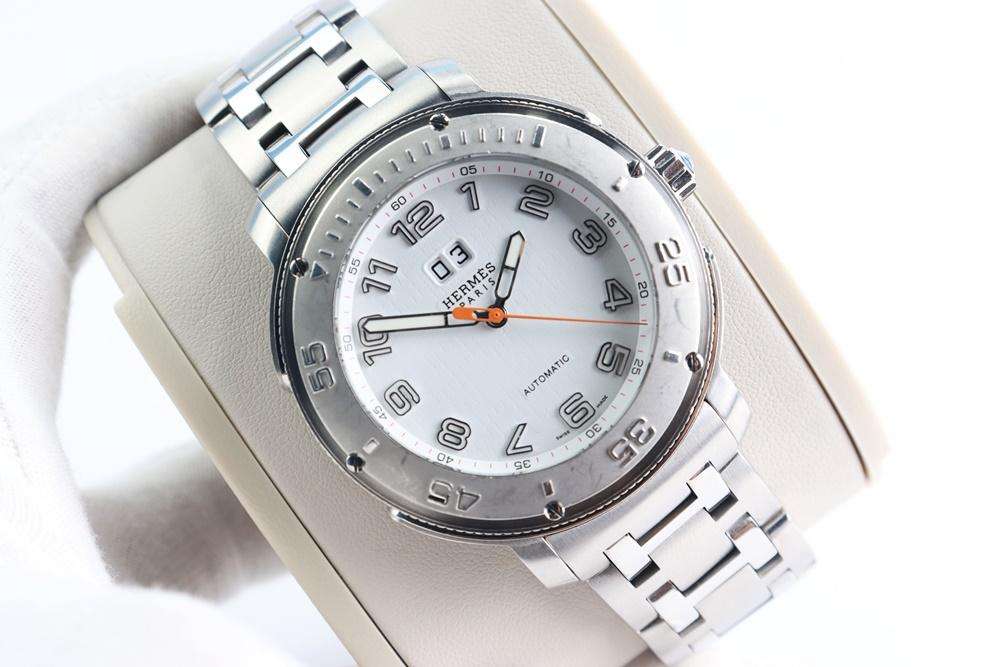 Đồng Hồ Nam : HERMES Clipper Sport Automatic - Thiết kế lộ máy, Niềng xoay, Mặt trắng cọc số học trò...