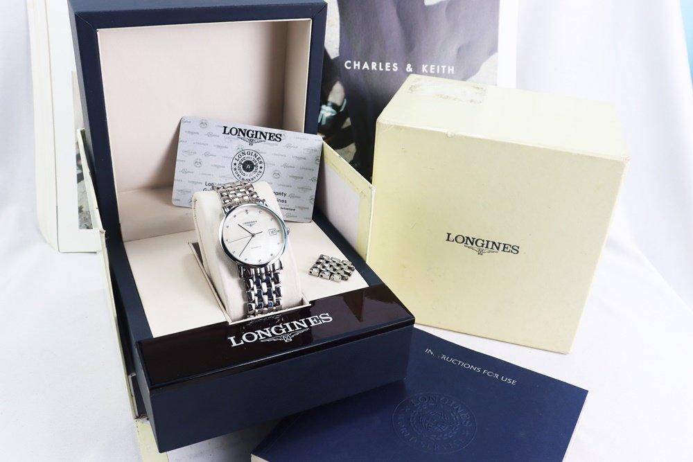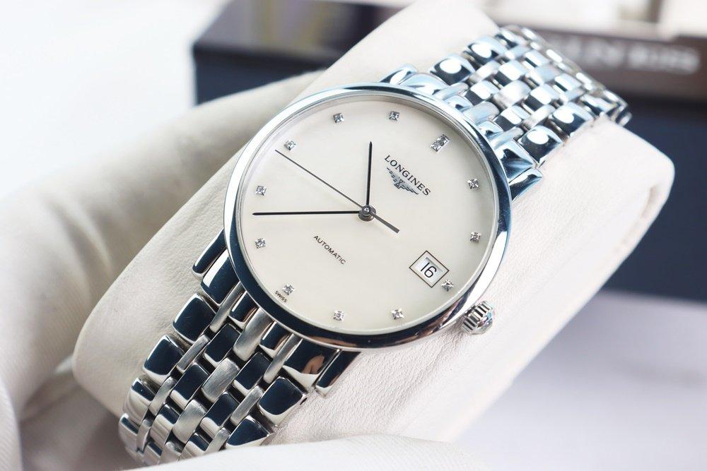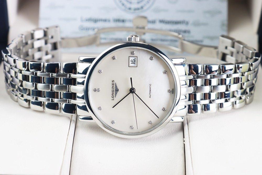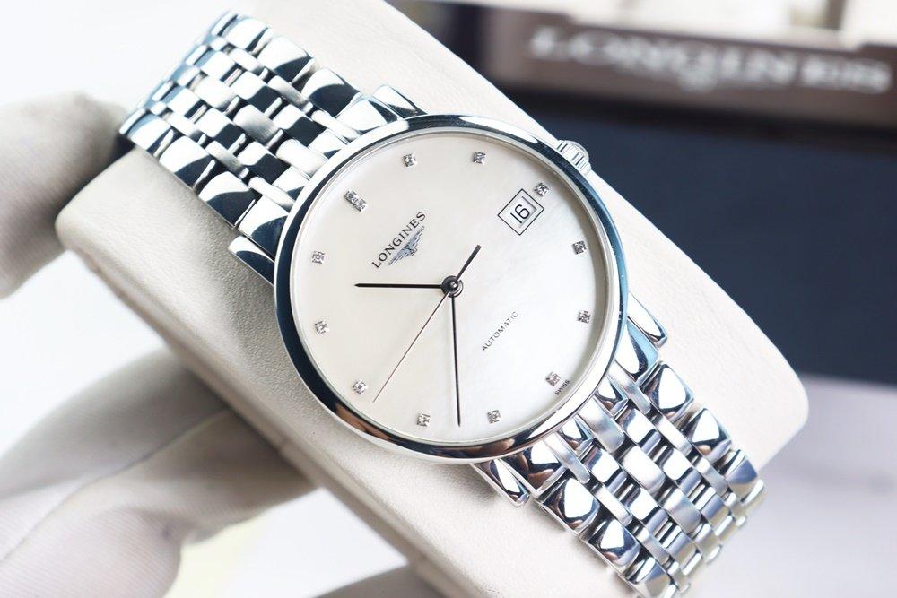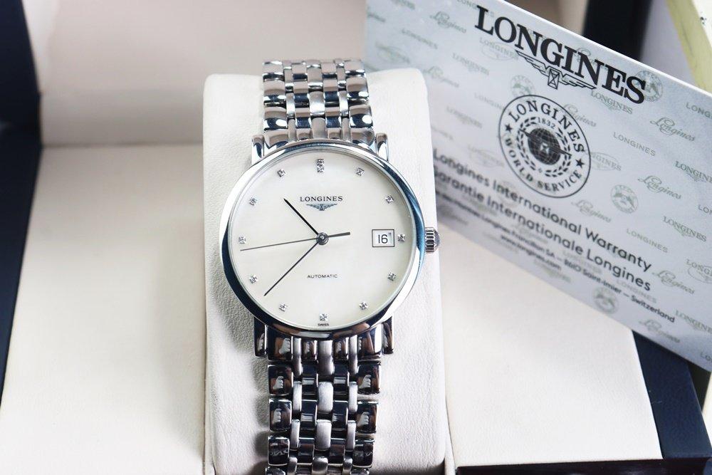 Đồng Hồ Nam : Longines Elegant Automatic, mặt xà cừ, cọc số đính 12 viên Kim Cương Fullbox....