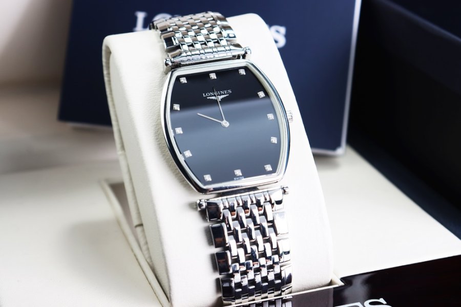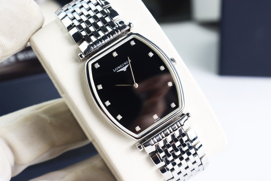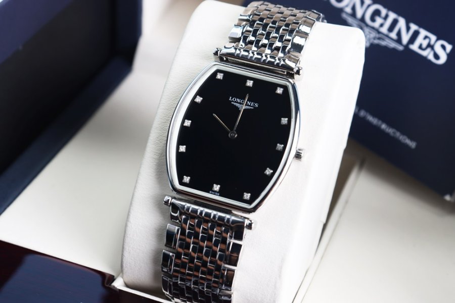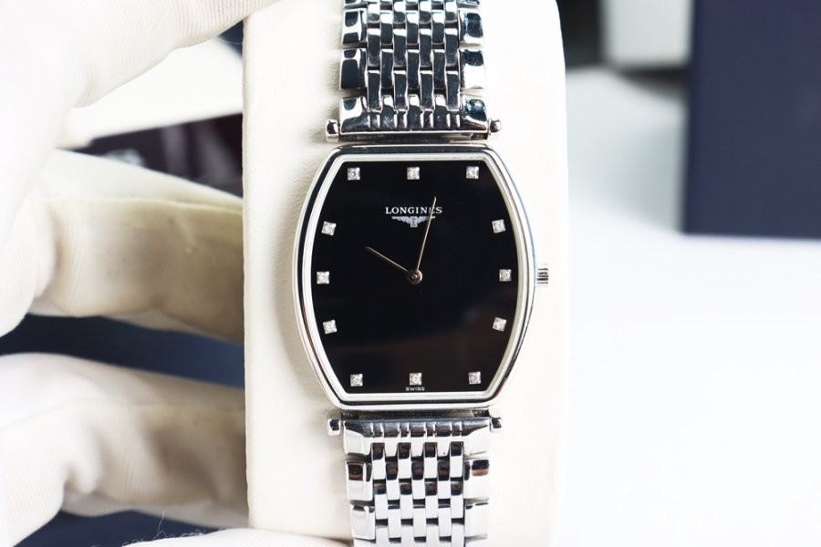 ĐH Nam : Longines La Grande siêu mỏng, dây thép, mặt đen cọc giờ đính Kim Cương - Fullbox...