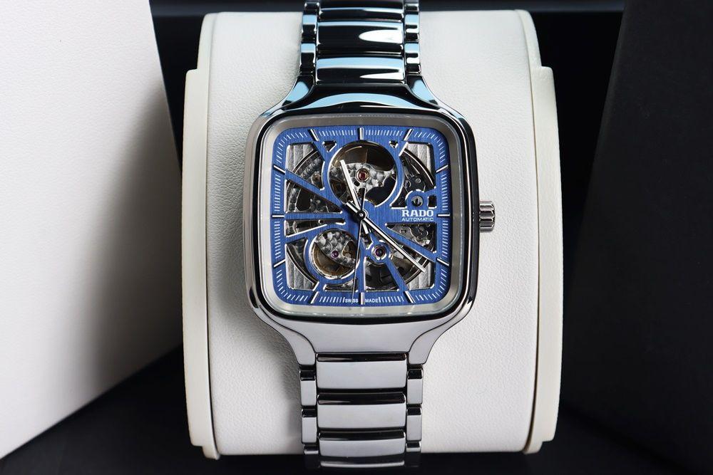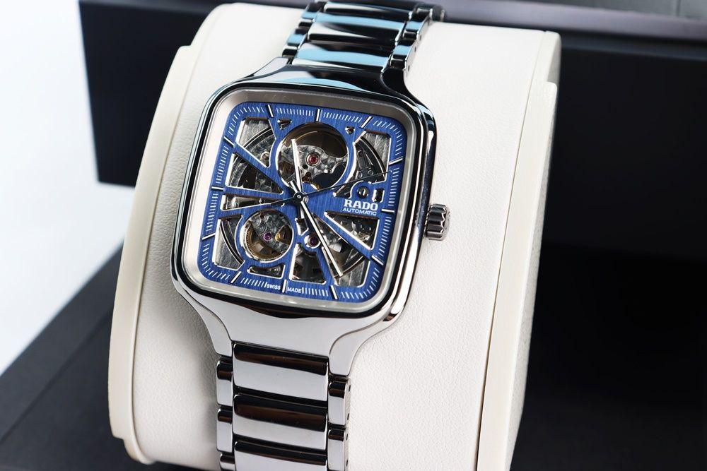 Đồng Hồ Nam : Rado True Square Automatic Open Heart, mặt vuông đá Ceramic Xám, Size 38mm, Fullbox...