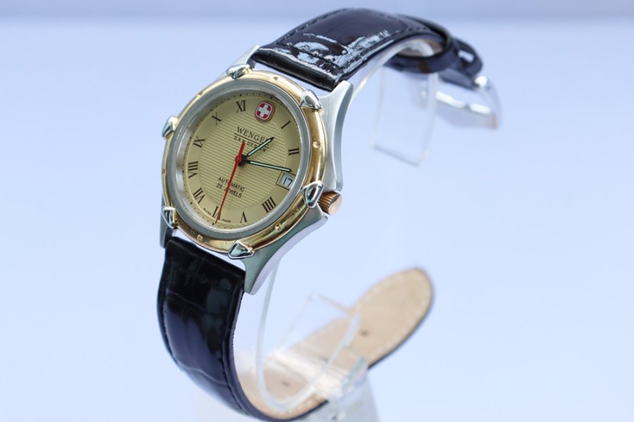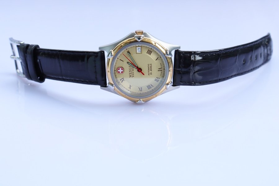 Đồng Hồ Nam WENGER Automatic, Dây da Niềng mạ Vàng 18k - Cọc số giờ La Mã