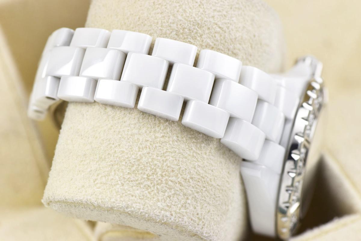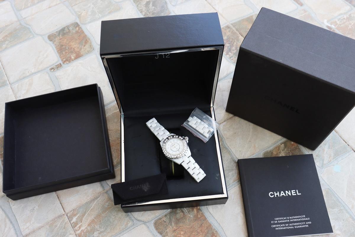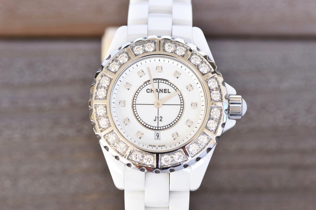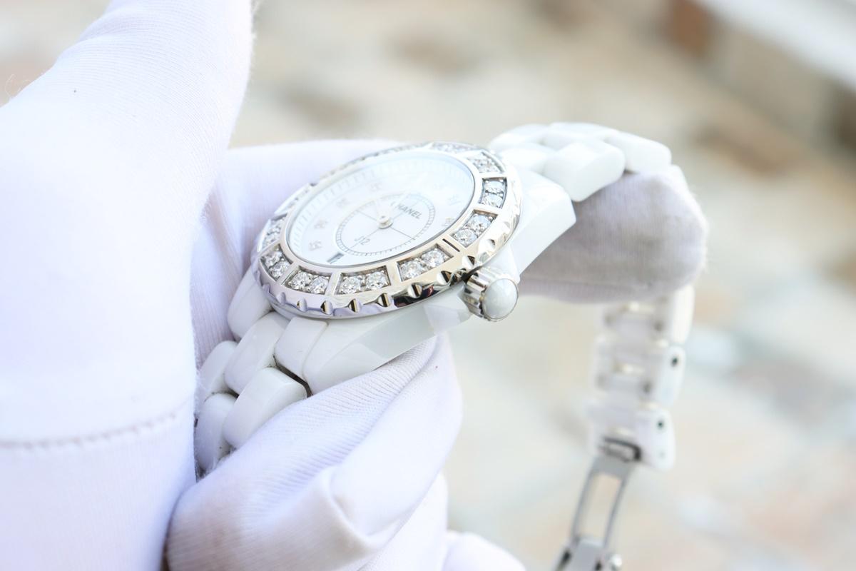 Đồng Hồ Nữ Chanel J12 Niềng & cọc số đính Full Kim Cương - Đá Ceramic trắng - Size 33mm - Fullbox...