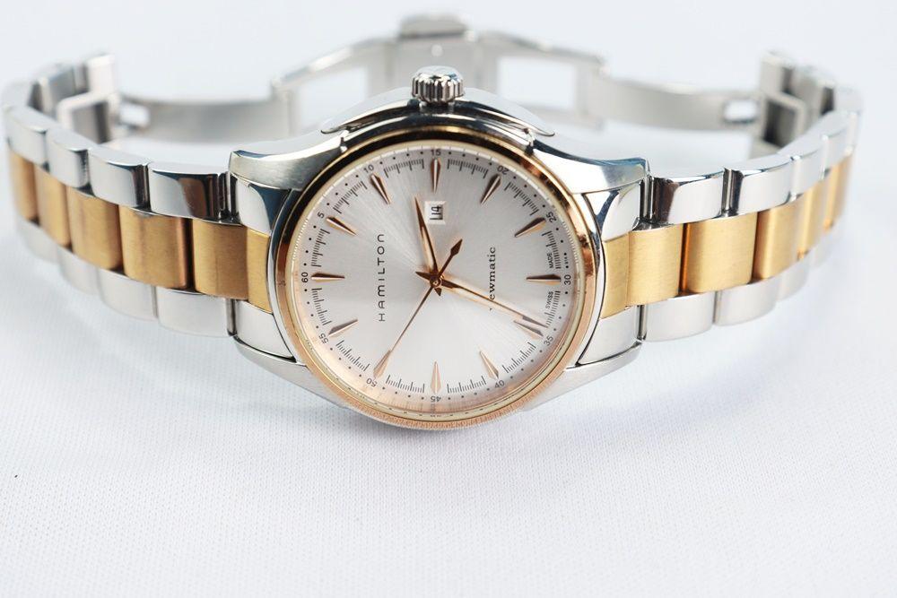 Đồng Hồ Nữ : Hamilton Jazzmaster Viewmatic Demi Vàng Hồng, Tự Đông, mặt tròn thép nguyên chiếc, size 34mm...