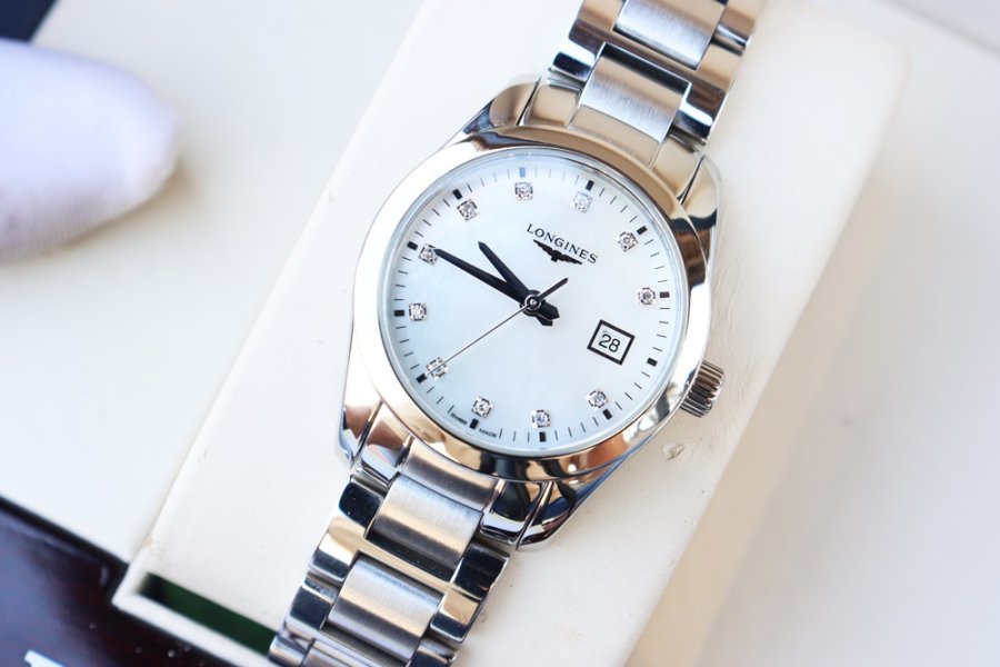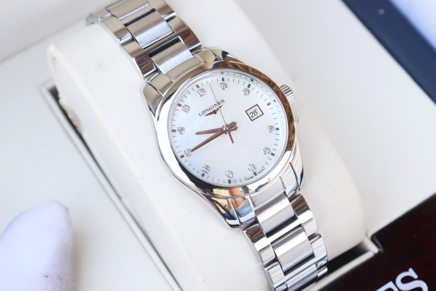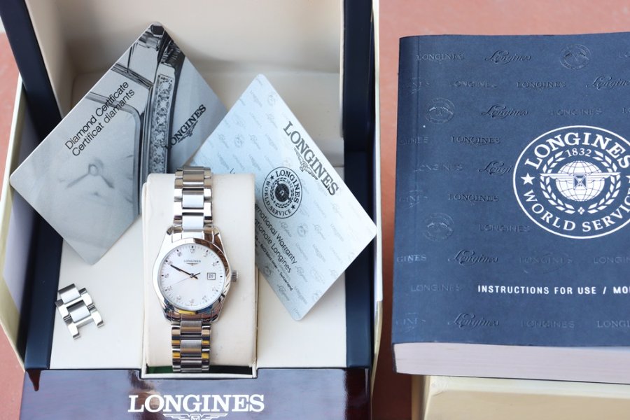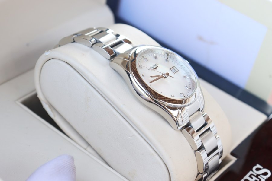 Đồng Hồ Nữ : Longines Conquest Classic, mặt Xà Cừ, cọc số đính Kim Cương - Size 29.5mm - Fullbox 2 thẻ...