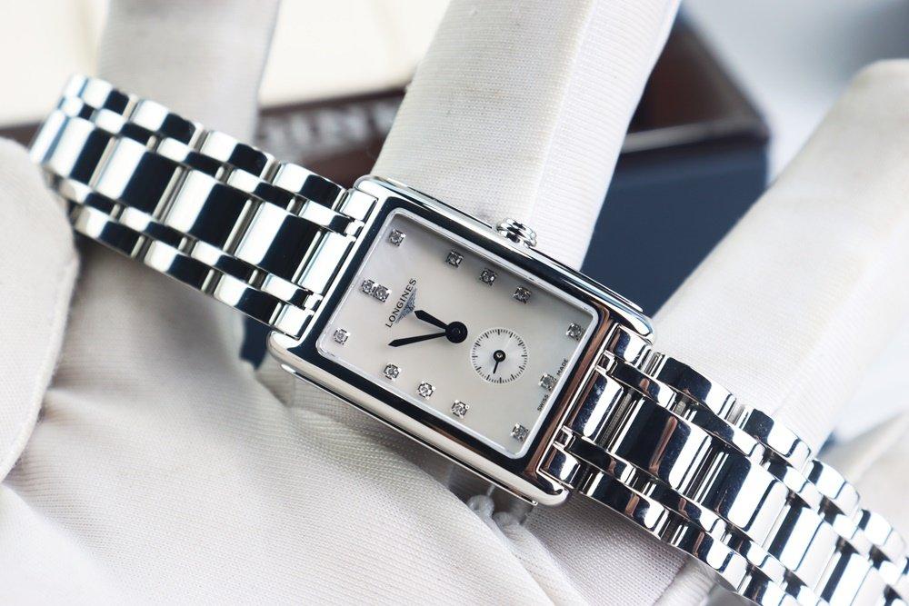 Đồng Hồ Nữ : Longines DolceVita, Dây Thép, mặt Xà Cừ, Kim Nung Xanh, cọc số đính 13 viên Kim Cương thiên nhiên, Fullbox...