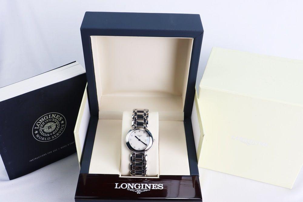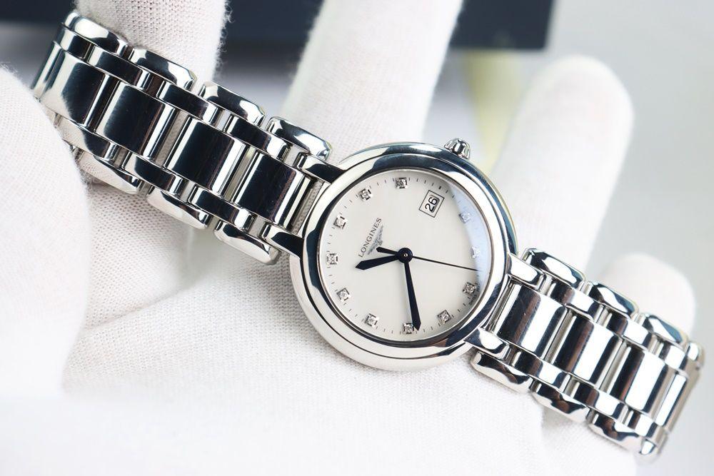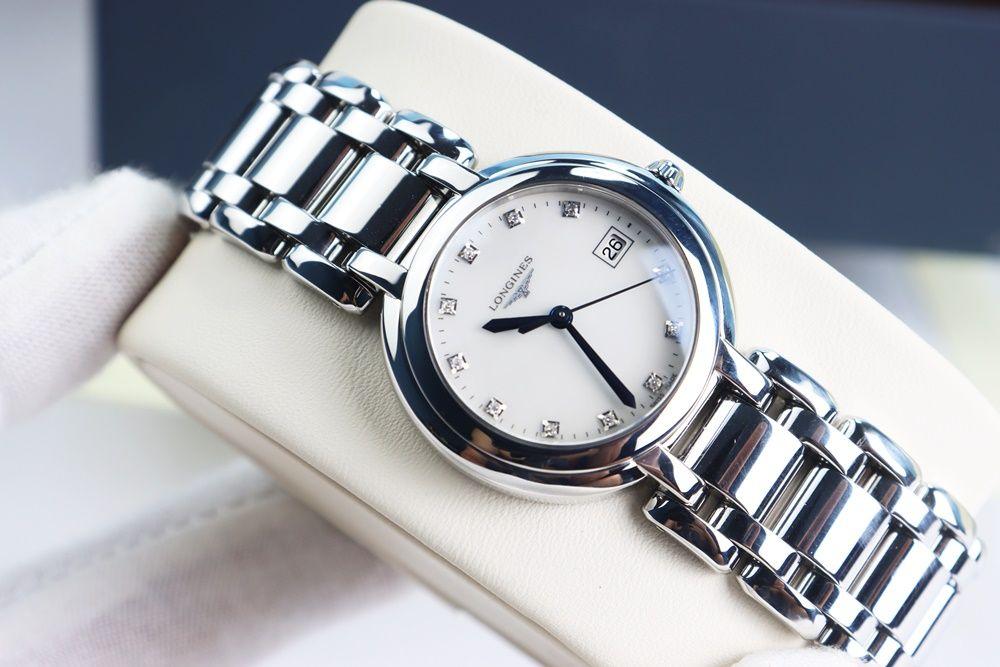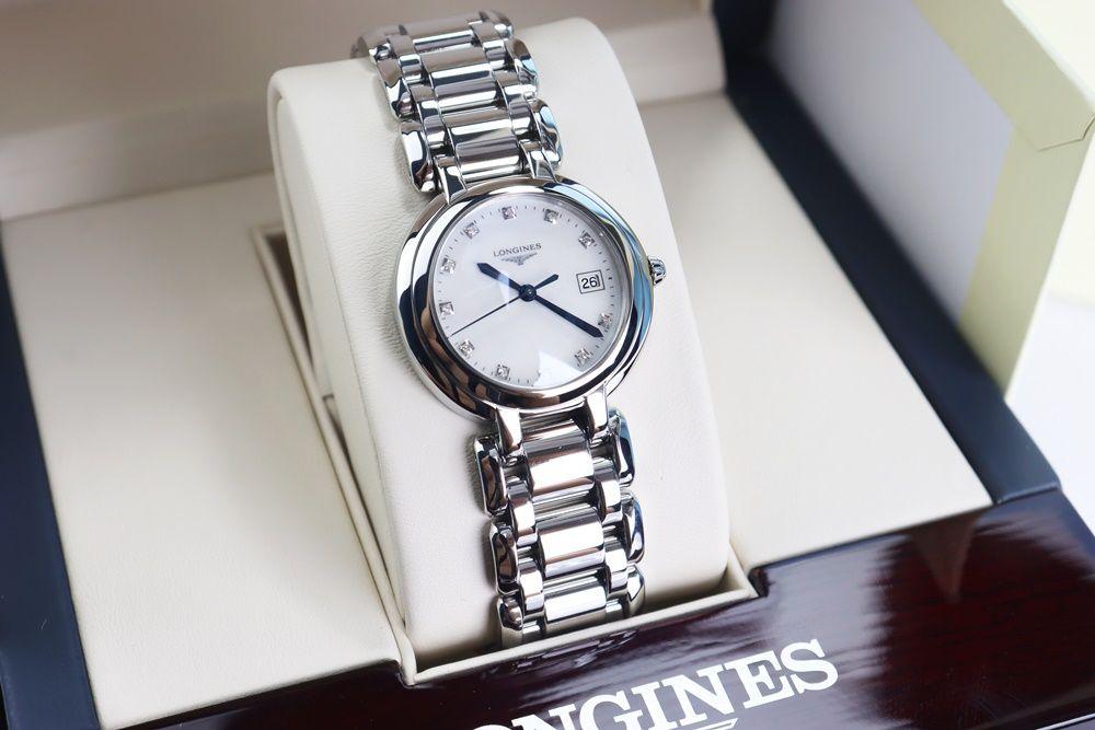 Đồng Hồ Nữ Longines Primaluna - Mặt khảm Trai, Kim nung xanh, Cọc số đính Kim Cương - Size 30mm - Fullbox....