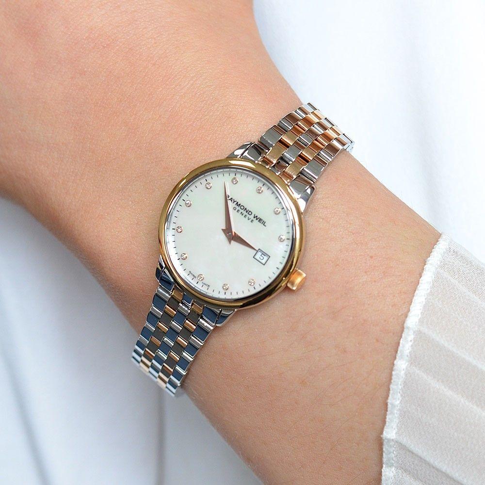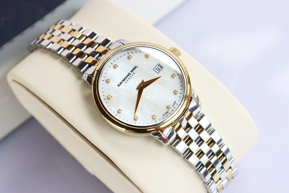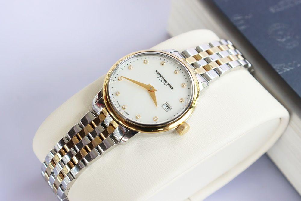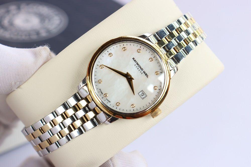 Đồng Hồ Nữ : Raymond Weil Toccata Diamond - Mạ Vàng, Mặt khảm Xà Cừ ,Cọc số đính Kim Cương....