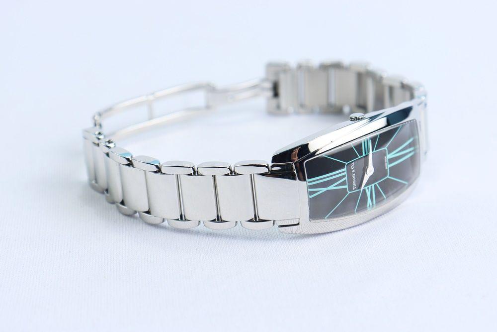 ĐH Nữ : Tiffany & Co. Gemea - Thép nguyên chiếc, Thiết kế mặt đen cọc giờ xanh Ngọc siêu hiếm đẹp...