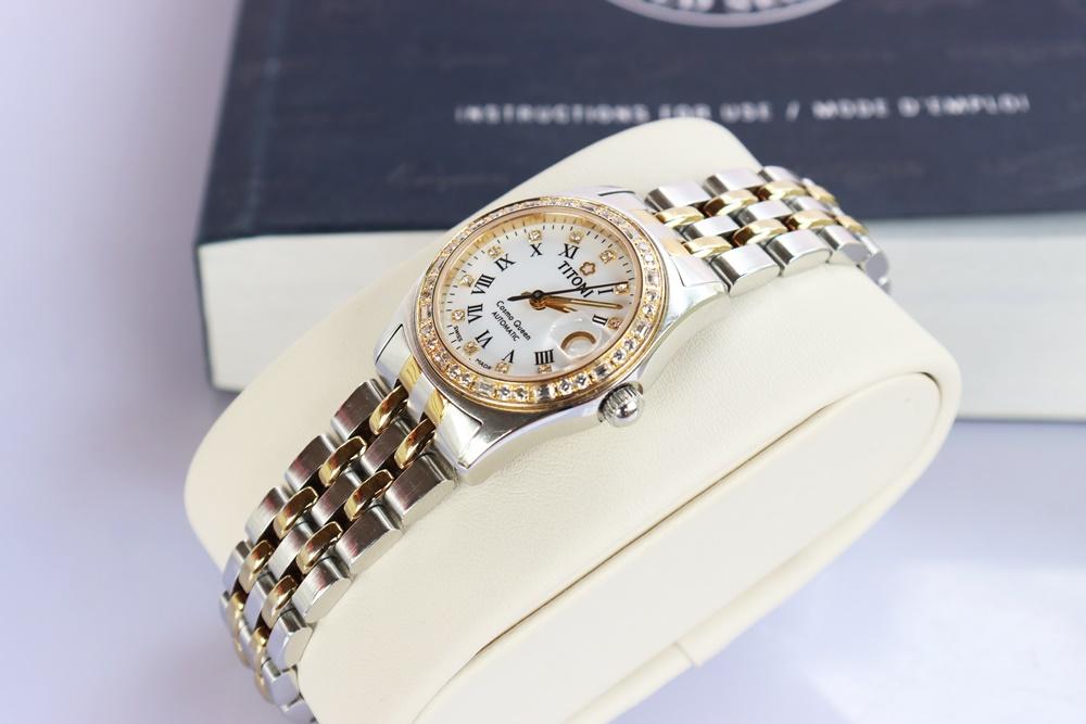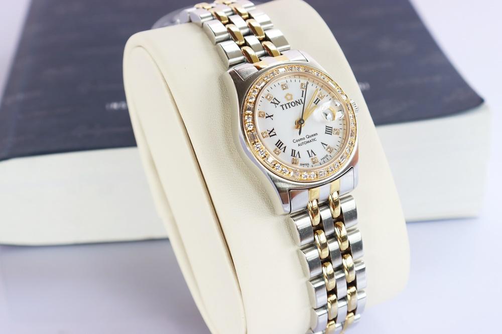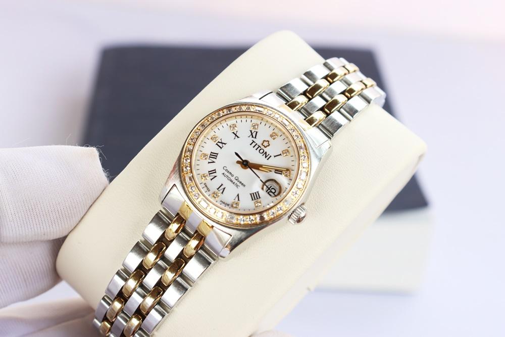 Đồng Hồ Nữ : TITONI Cosmo Queen 728 SY-DB-019 Ladies Automatic - Niềng & cọc số đính full Kim Cương...