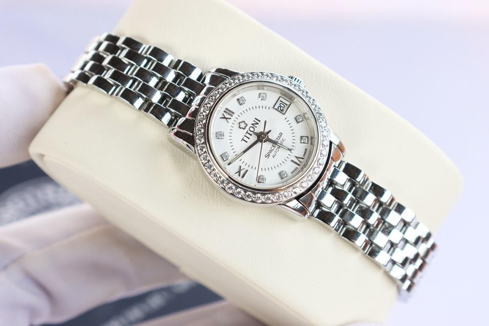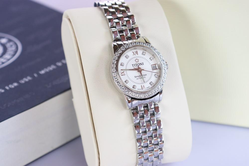 Đồng Hồ Nữ : Titoni Space Star Diamond Automatic - Niềng & cọc số đính full Kim Cương thiên nhiên...