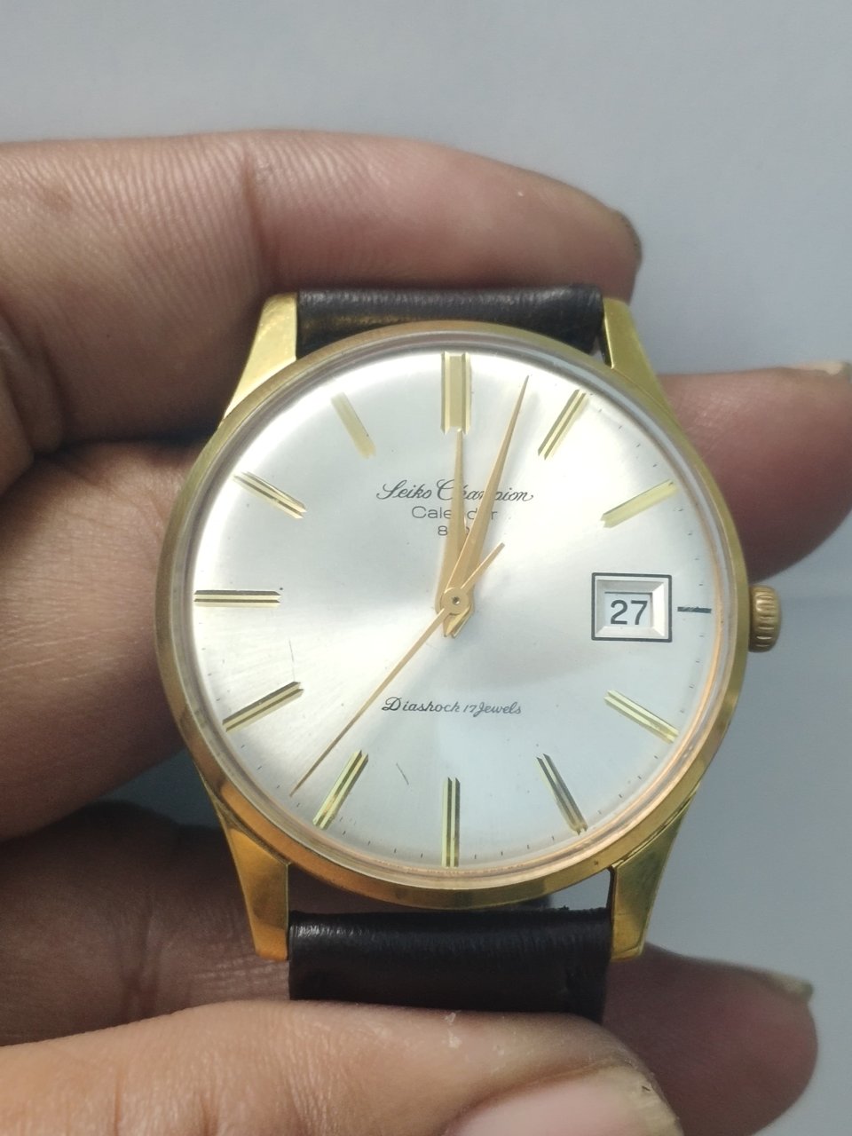 đh Seiko cơ cót xưa bọc vàng màu vàng chanh rất đẹp. bộ máy 17 jiwels 860 đời cao hoạt động hoàn hảo lịch nhãy OK chuẩn. size to 36mm. vỏ bọc màu vàng chanh đẹp không phay mờ hay bong chóc gì. ae cần LH nhé.