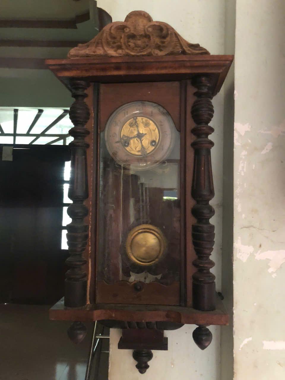 do đức quốc xã sx năm 1923 size 78 x 36 cm, vách máy dày, bánh răng to chuông 1/2 to ngân sâu âm dịu dể nghe, nguyên bản hình thức đẹp, mặt số 2 lòng viềng trong đồng dập nổi giá trị, đáng sưu tầm
