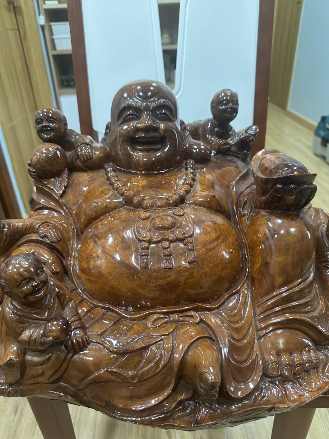 Thanh lý tượng Phật Di Lặc gỗ Hương Việt, ngang 52 cao 35 sâu 47. Nặng 25kg, gỗ có nu nhẹ rất đẹpGiá 7trLh zalo 0888889168. HCM Bình Tân