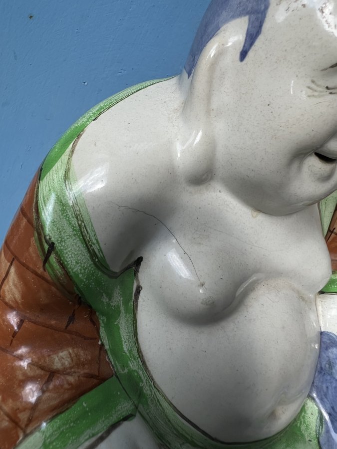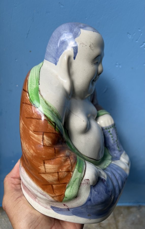 Di Lặc ngủ sắc gốm Lái Thiêu xưa Cao 23cm. Ngang 20cm