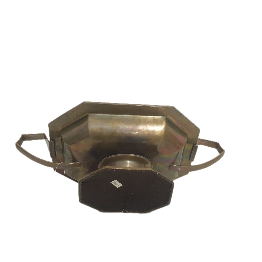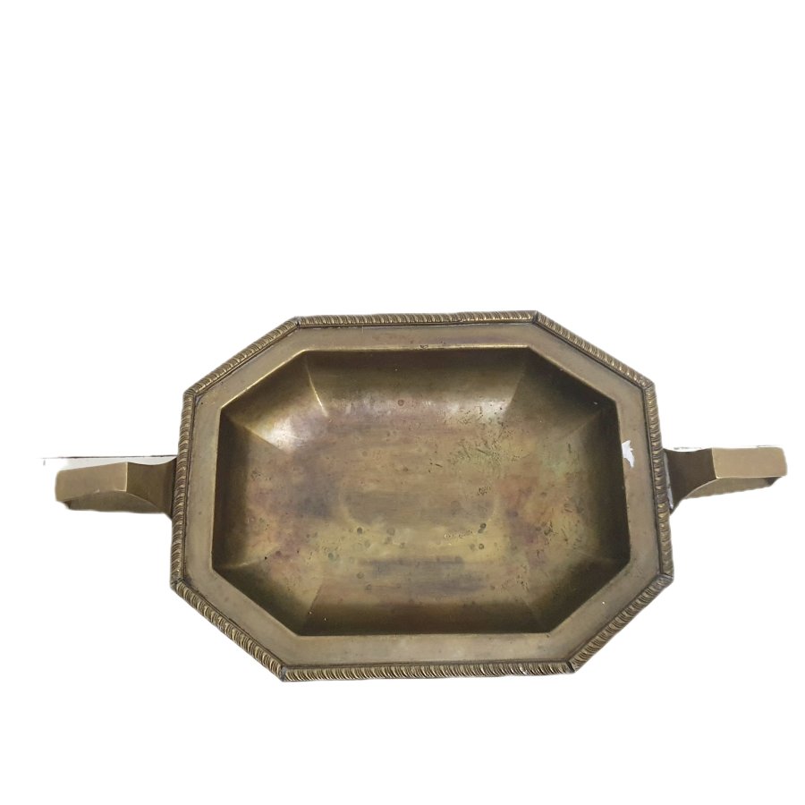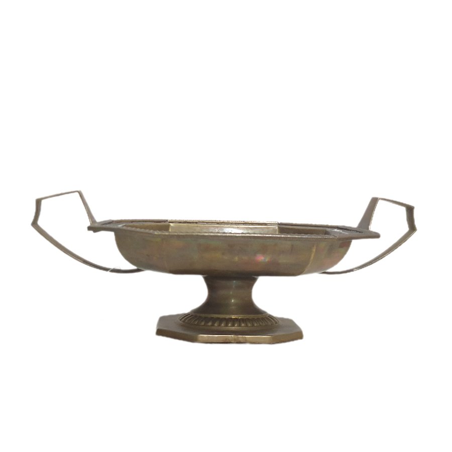 Đĩa bằng đồng thau có chân đế cao phong cách Art Deco. Thân đĩa bát giác - Chân đế trụ - Tay cầm cách điệu.