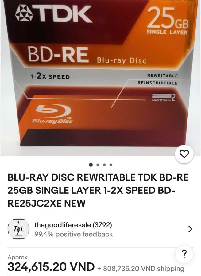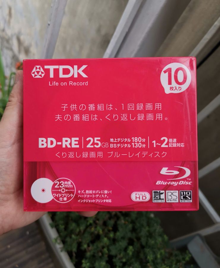 Đĩa Blu-ray TDK Nhật ghi xóa nhiều lần. Dung lượng đĩa 25GB, dùng ghi dữ liệu hoặc 180p video FullHD. Đây là dòng sản phẩm Life On Record nội địa có độ bền cao tới hơn 1000 lần ghi xóa, mặt trên đĩa chống trầy xước có thể dùng với máy in label. Giá cho 1 đĩa, mua số lượng có fix thêm.