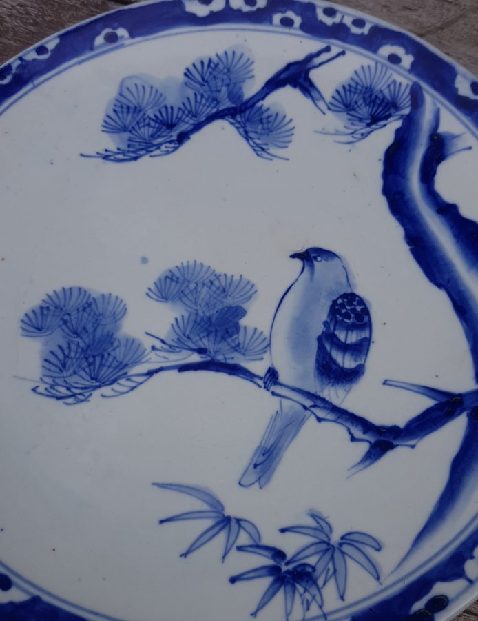 Đĩa sứ men lam chuẩn cổ điển tích anh hùng độc lập.đĩa có đường kính 32cm. tình trạng có nảy mép thành ngoài như hình. còn lại lành lặn. GL1979k