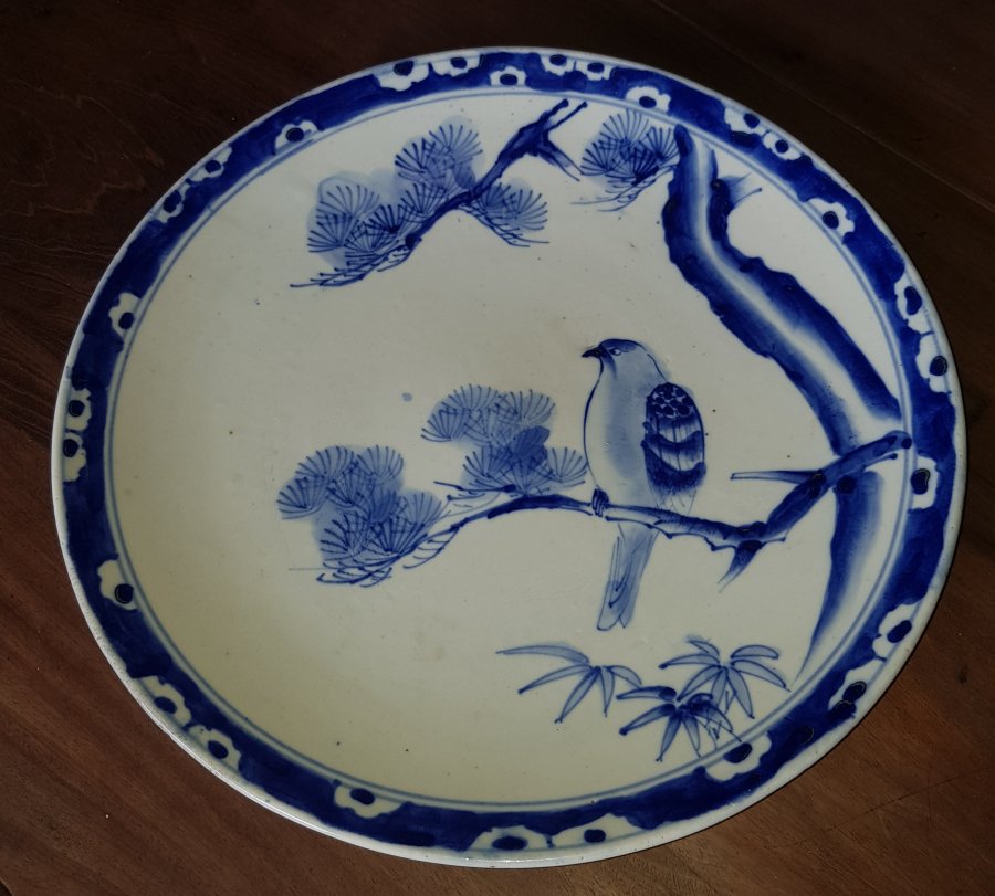 Đĩa men lam chuẩn cổ điển tích Anh Hùng Độc Lập. Đĩa đường kính 32.5cm. có vết nảy phía sau đĩa như hình chụp còn lại lành lặn. GL2250k