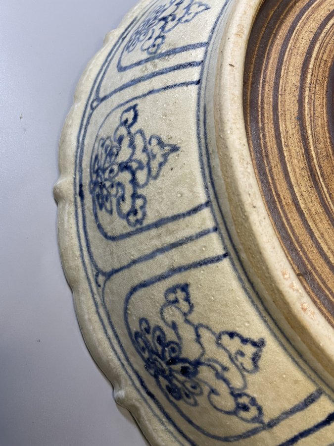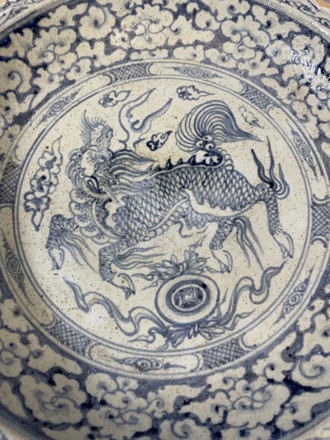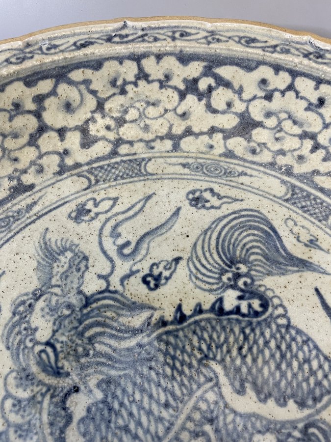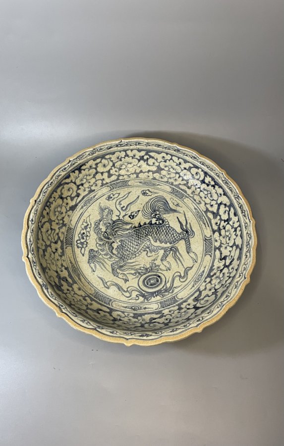 Dĩa dán cánh sen vẽ Long Mã , đường kính lớn