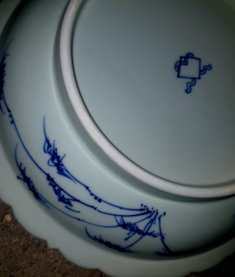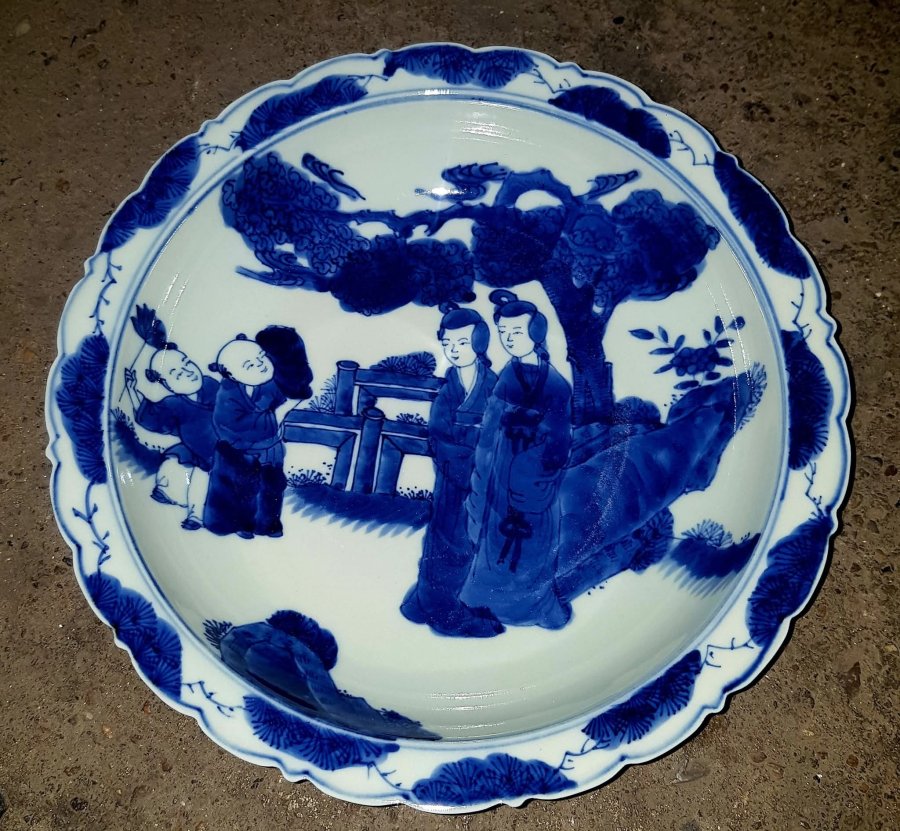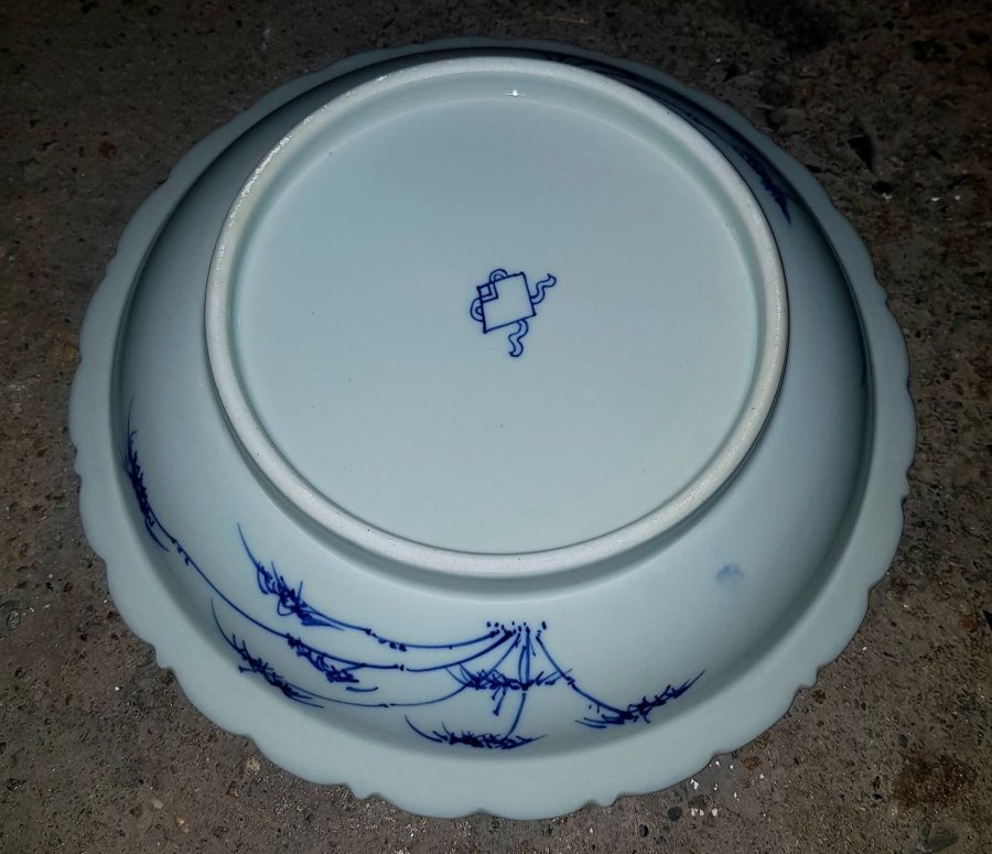 Đĩa dáng lợi chậu sâu lòng có phía trong vẽ người , phía ngoài là trúc . có đường kính 22cm. cao 5cm. Lành lặn. GL1550k