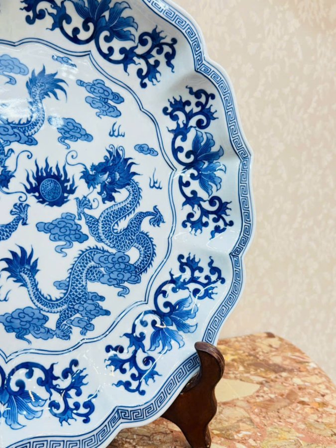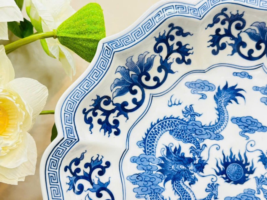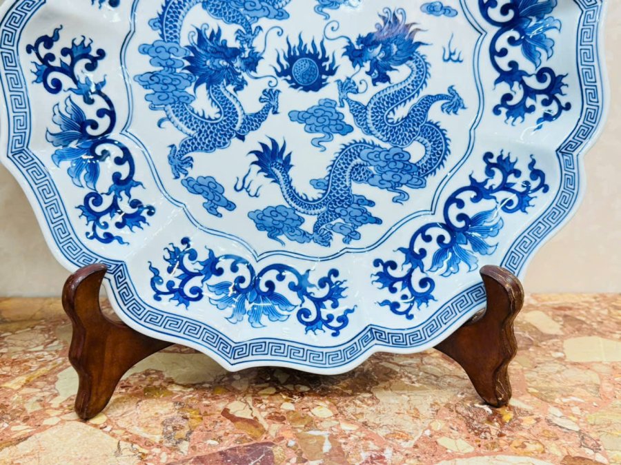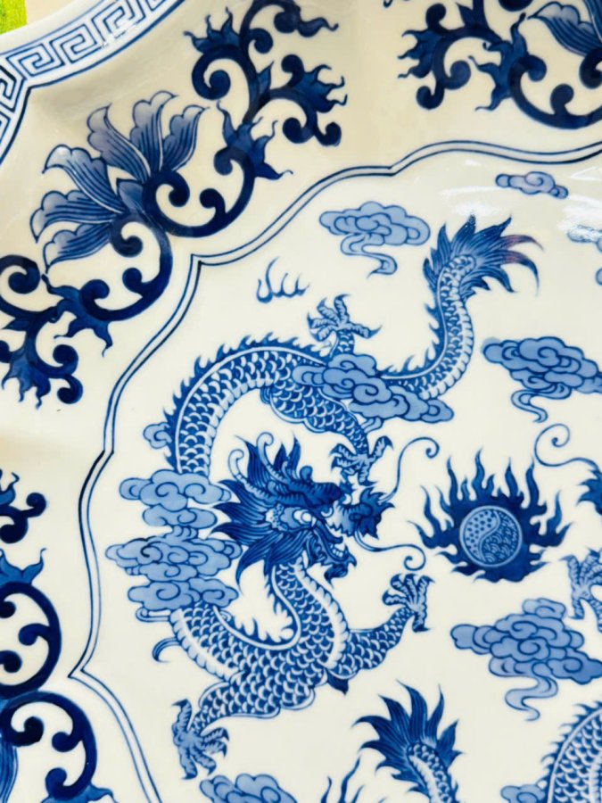 🏯 Hoạ tiết hoa văn men xanh kết hợp cặp rồng uốn lượn rất đẹp .