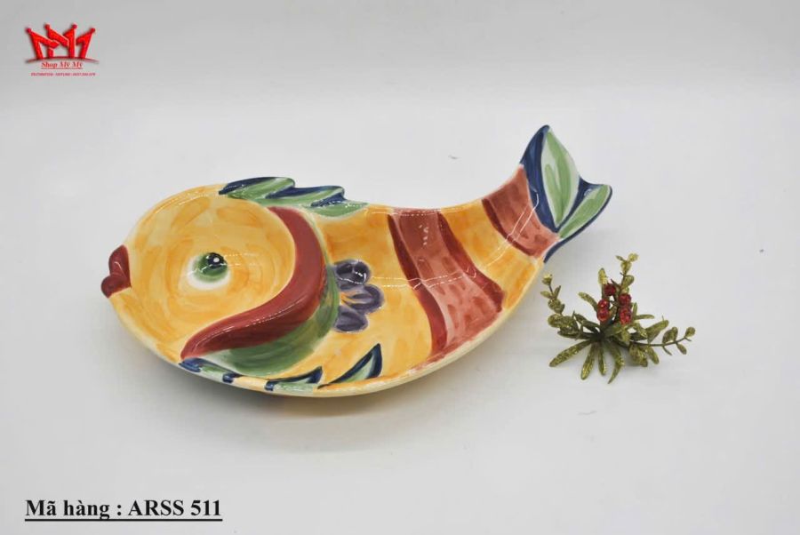 Dĩa sành sứ hình con cá được vẽ sơn băng tay.