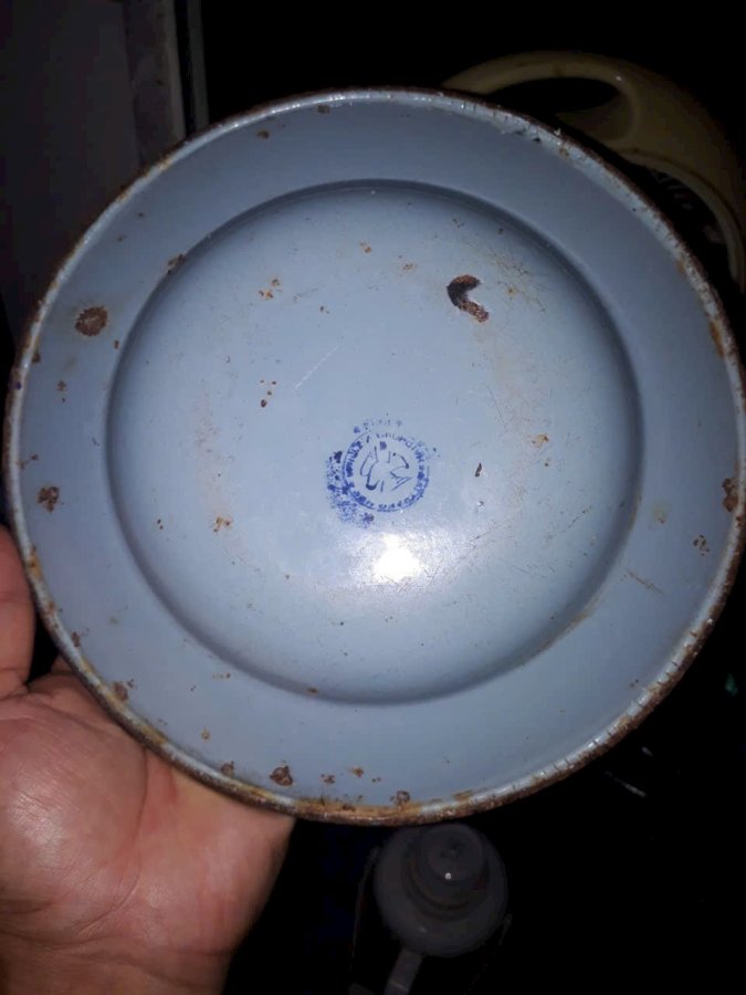 Chiếc đĩa sắt đk 22cm. có hoa văn của Hải Phòng sản xuất được cho là đĩa quốc dân thời bao cấp. Hầu như nhà nào cũng có. Khi ấy nhà mình để đựng rau muống luộc và cà pháo ghém muối là nhiều, có bao giờ thấy miếng thịt nào đâu.