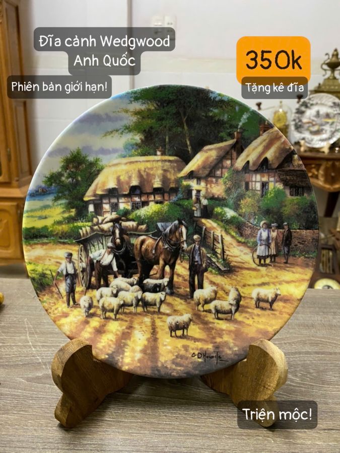 Đĩa sứ cảnh Anh Quốc đủ triện mộc Tặng kê đĩa!