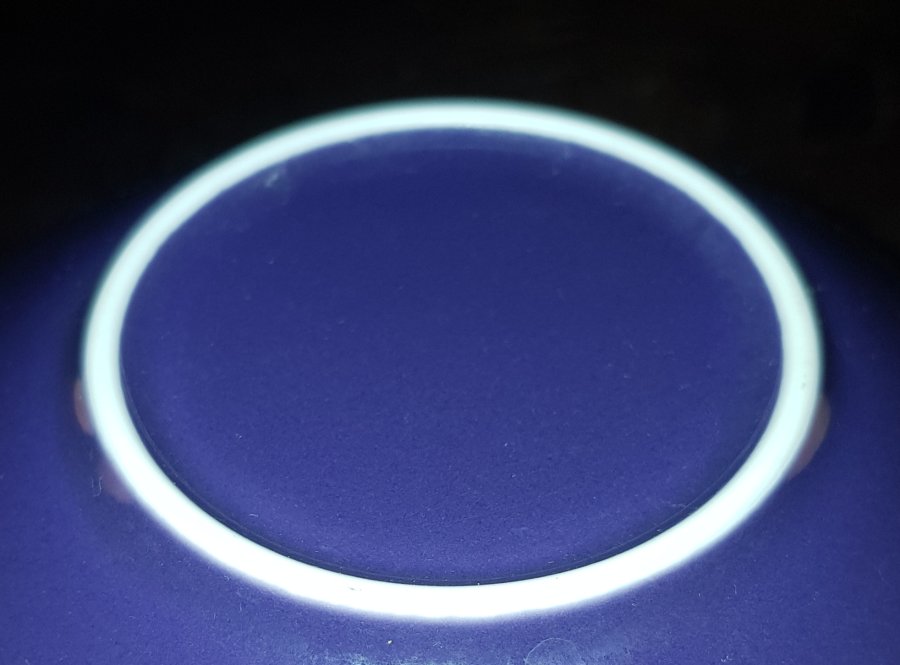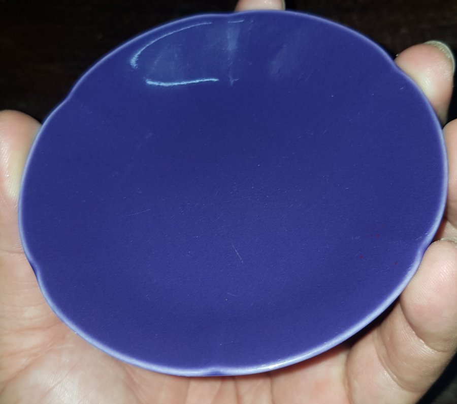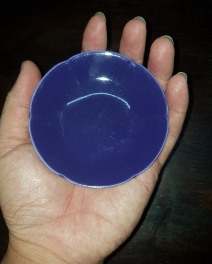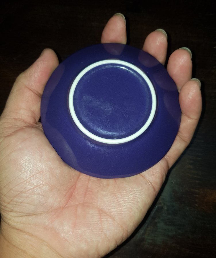 Đĩa sứ men lam chuẩn cổ tạo hình bông hoa mai có đường kính 9.5cm. lành lặn. GL1550k