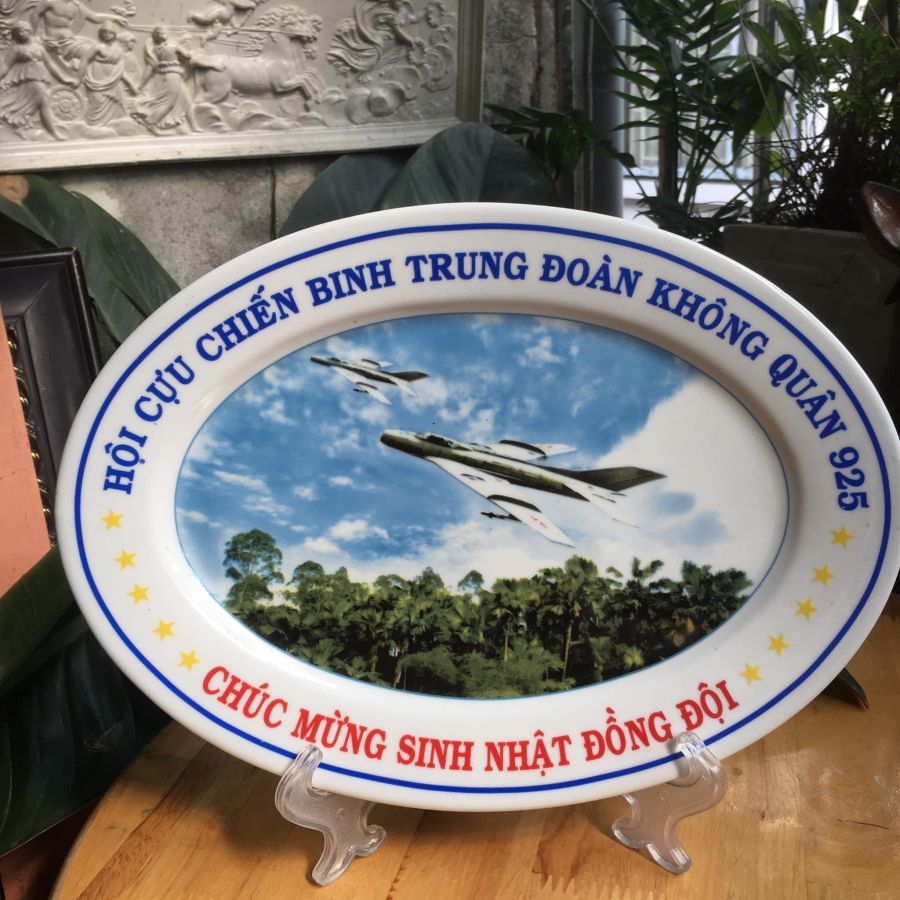Đĩa sứ oval Trung đoàn không quân 925, đĩa nguyên bản dành cho trưng bày, tặng chân nhựa, rất hiếm gặp, kích thước đk 22/30 cm. Giá bán: 170 k + ship, nhận ship toàn quốc.