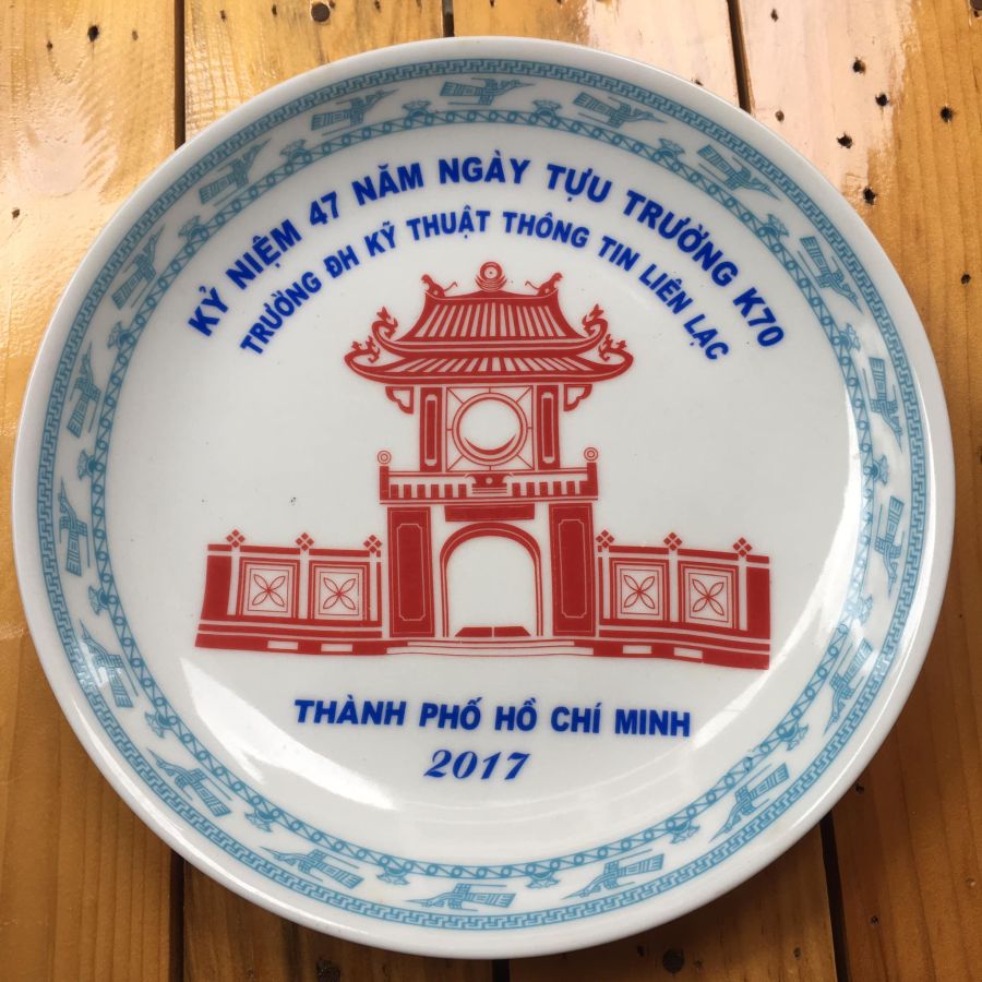 Đĩa Sứ Quốc Tử giám, Kỷ niệm 47 năm K70 trường đại học thông tin liên lạc, hiếm gặp, chất liệu sứ cao cấp Bát Tràng, có chân nhựa, kích thước đk 22,5 cm. Giá bán: 170k + ship, nhận ship toàn quốc.