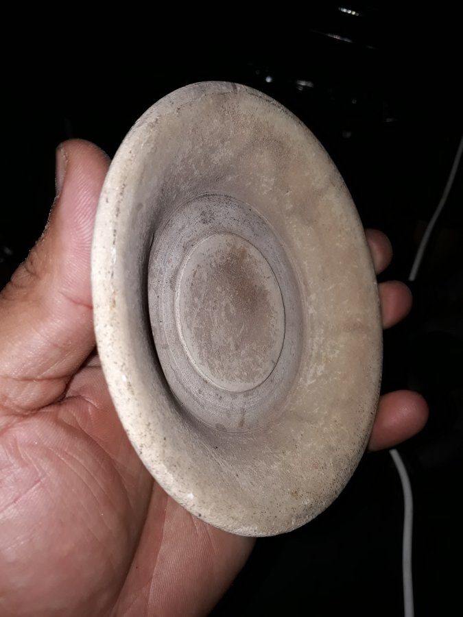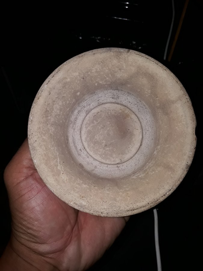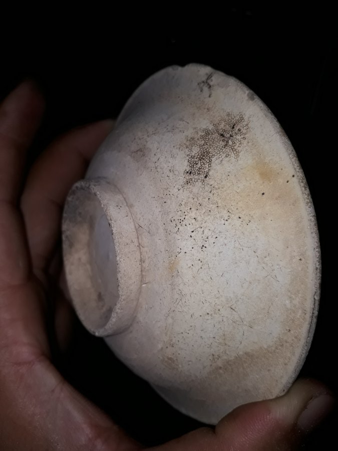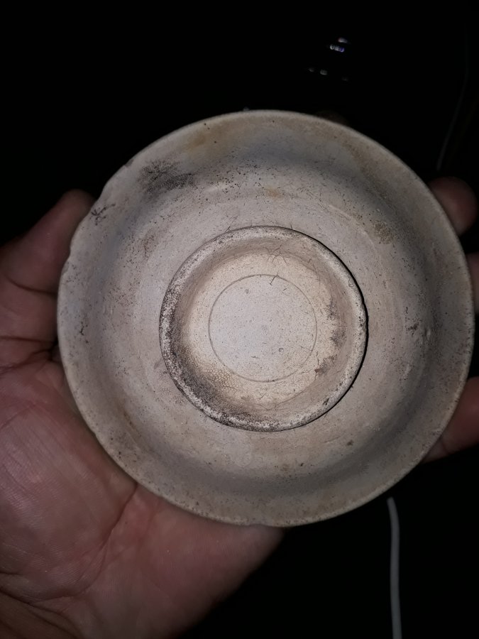 Chiếc bát sứ Việt cổ thời nhà Lê, đk miệng 11,8cm. Tạo dáng trôn nhỏ cao, lòng lồi, cạnh vát uốn rất đẹp. Vảy 2 hạt ngô, còn lại lành đẹp.
