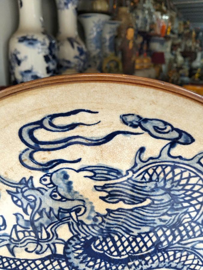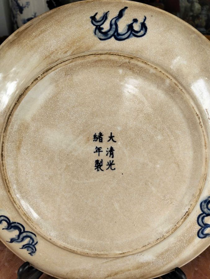 Rồng 5 móng ! Đĩa Tàu men rạn , lành tít , viền socoolate , lành tít đáng để sưu tập . + Trôn hiệu đề 6 chữ : Đại Thanh Đạo Quang Niên Chế + Đường kính : 34 cm