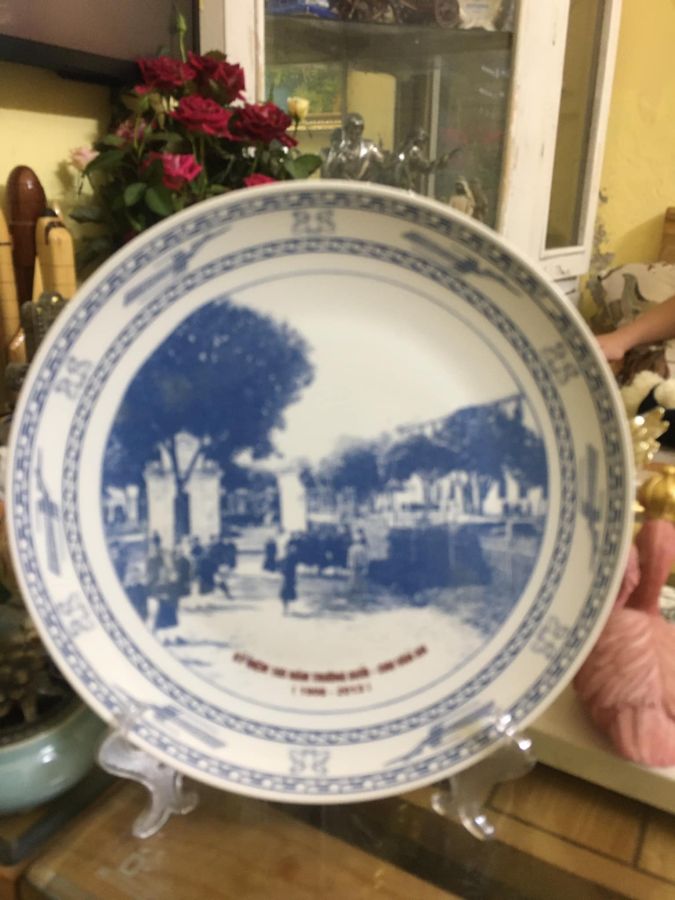 Đĩa sứ Trường Bưởi-Chu Văn An, ít gặp, chất liệu sứ Thiên Đức, Bát Tràng, tặng giá đỡ bằng nhựa trong suốt***, kích thước đk 27 cm. Giá bán: 250k + ship, nhận ship toàn quốc.