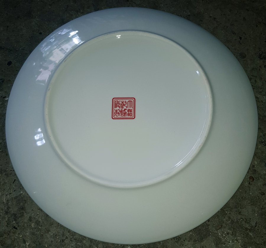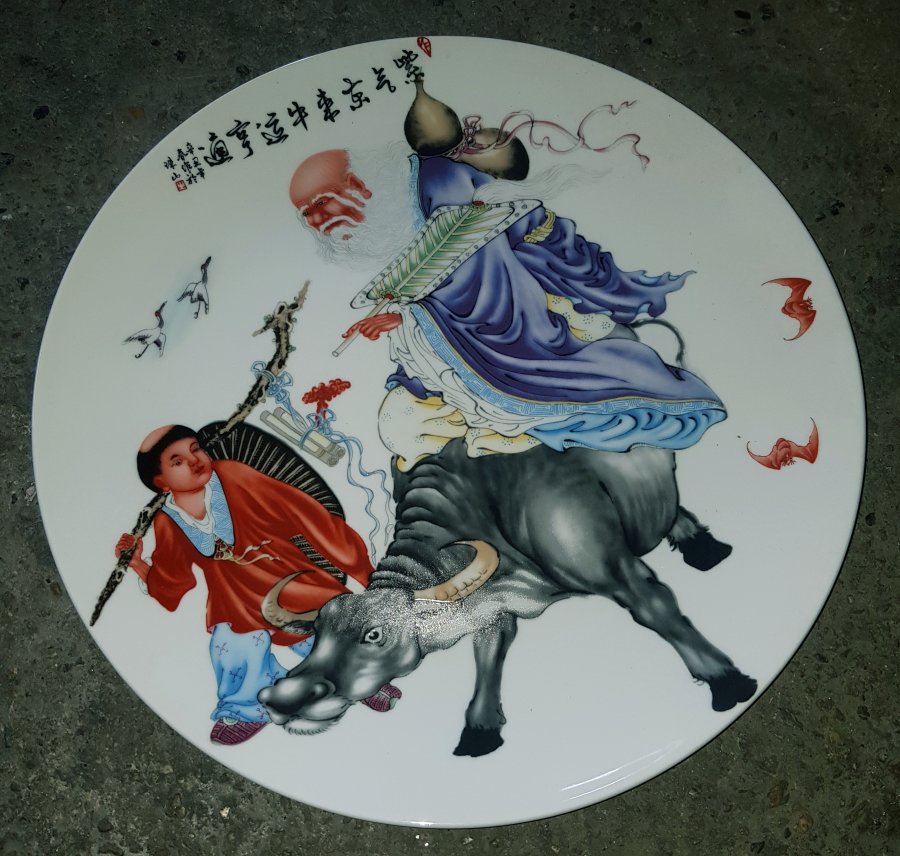 Đĩa sứ vẽ Lão Tử đường kính 35.5cm. lành lặn cốt nặng. GL950k