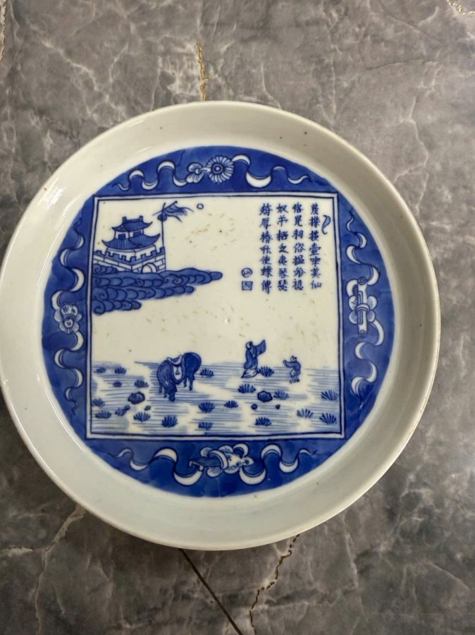 Đĩa Tàu vẽ khung tranh dk 18 cm.
