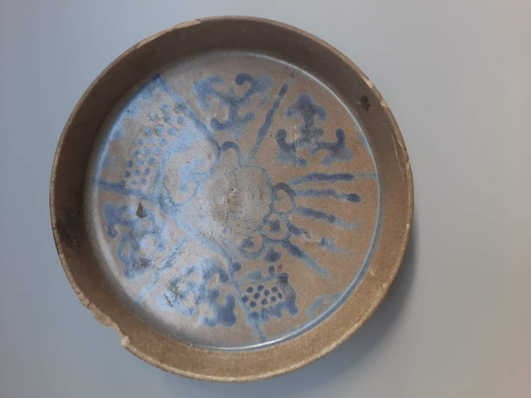 Dĩa Trà vẽ Long Ẩn hiệu đề "Ngọc Hợp" đk 16cm, Tình trạng: men mục khờn 2 điểm, vẩy thịt 1 vết.