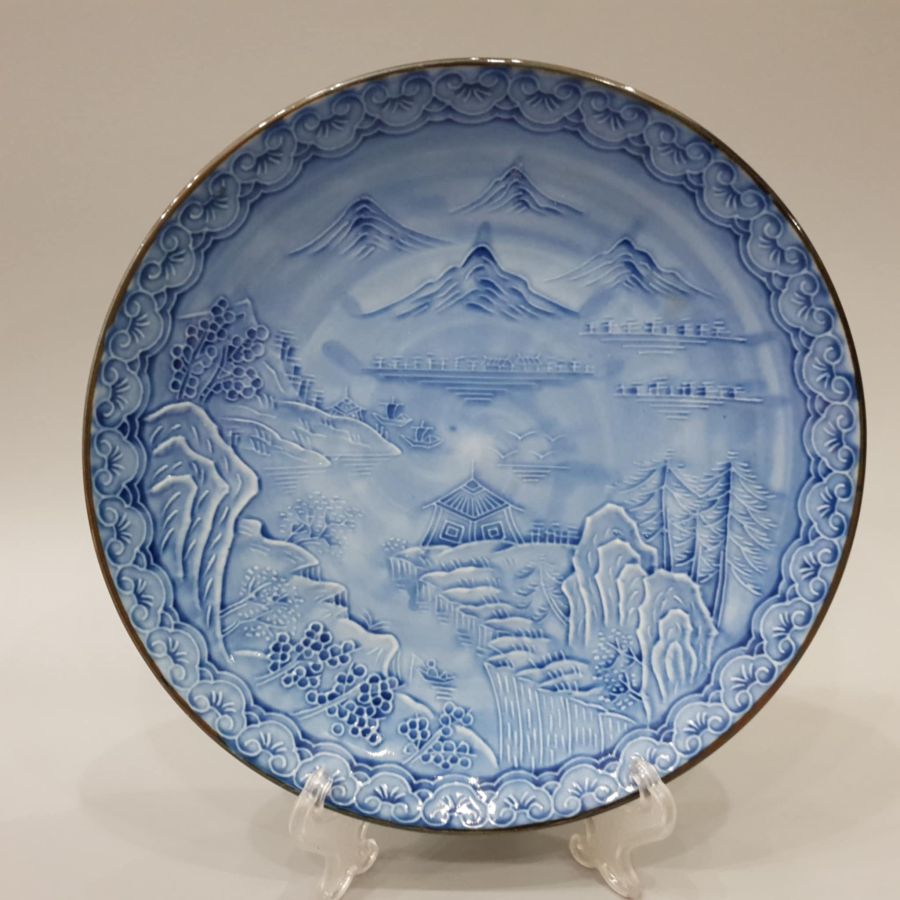 Vẽ khắc nổi trên nền men lam .