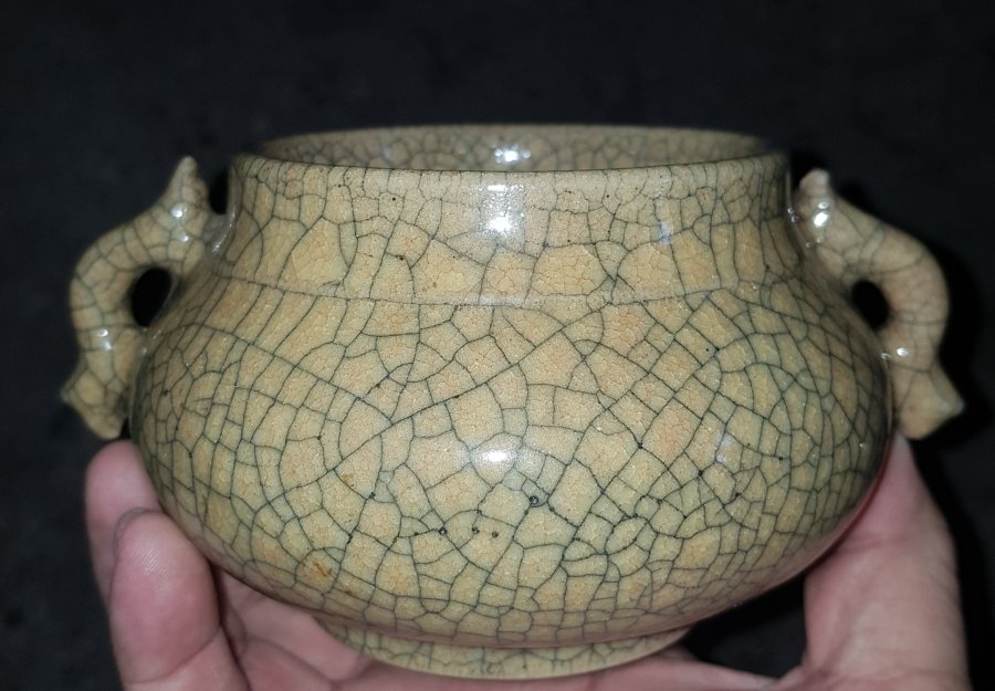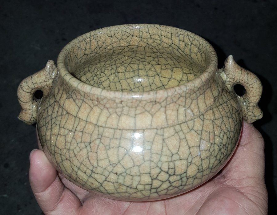 Đỉnh Ca Điêu này có kích thước đường kính miệng 9cm. cao 8cm. lành lặn. GL950k