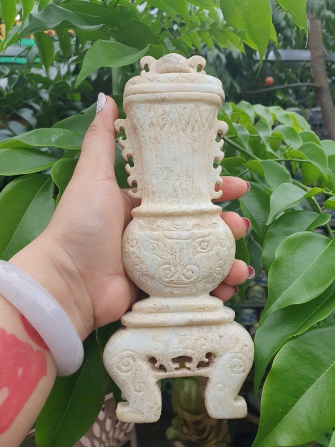 Đỉnh đá ngọc chiêu tài hút lộc.Cao 21,5cm*8,5cm*3, 5cm. 1200k